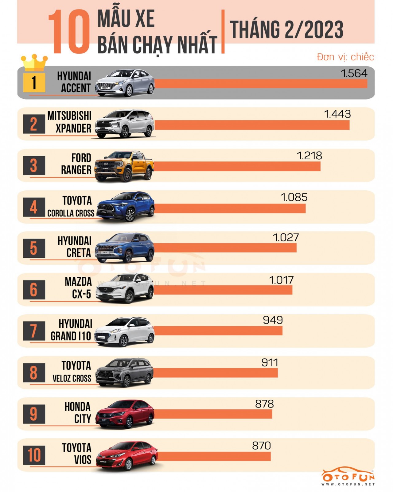 [Infographic] 10 xe bán chạy nhất tháng 1/2023