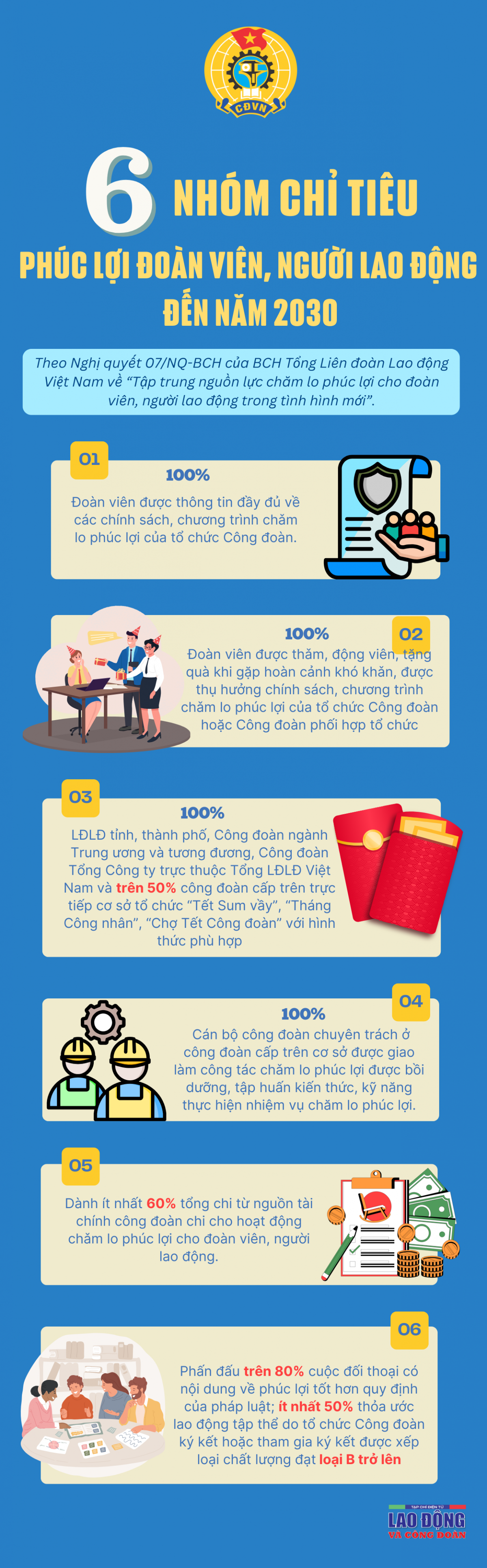 6 nhóm chỉ tiêu về chăm lo phúc lợi cho đoàn viên, người lao động đến năm 2030