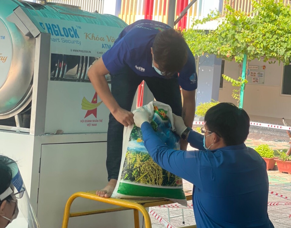 Chương trình "ATM Gạo" cho người dân, công nhân lao động tại điểm giãn cách xã hội theo Chỉ thị 16 của Chính phủ tại phường Thạnh Lộc được TW Hội Doanh nhân trẻ Việt Nam đứng ra tiếp nhận và kêu gọi ủng hộ gạo phục vụ người dân. “Cha đẻ” của "ATM Gạo" - ông Hoàng Tuấn Anh (Giám đốc Công ty Khóa điện tử PHGLock) đang là thành viên của hội.