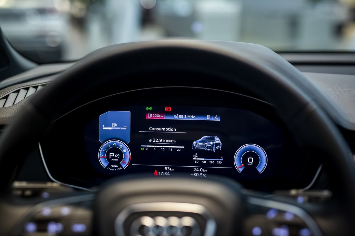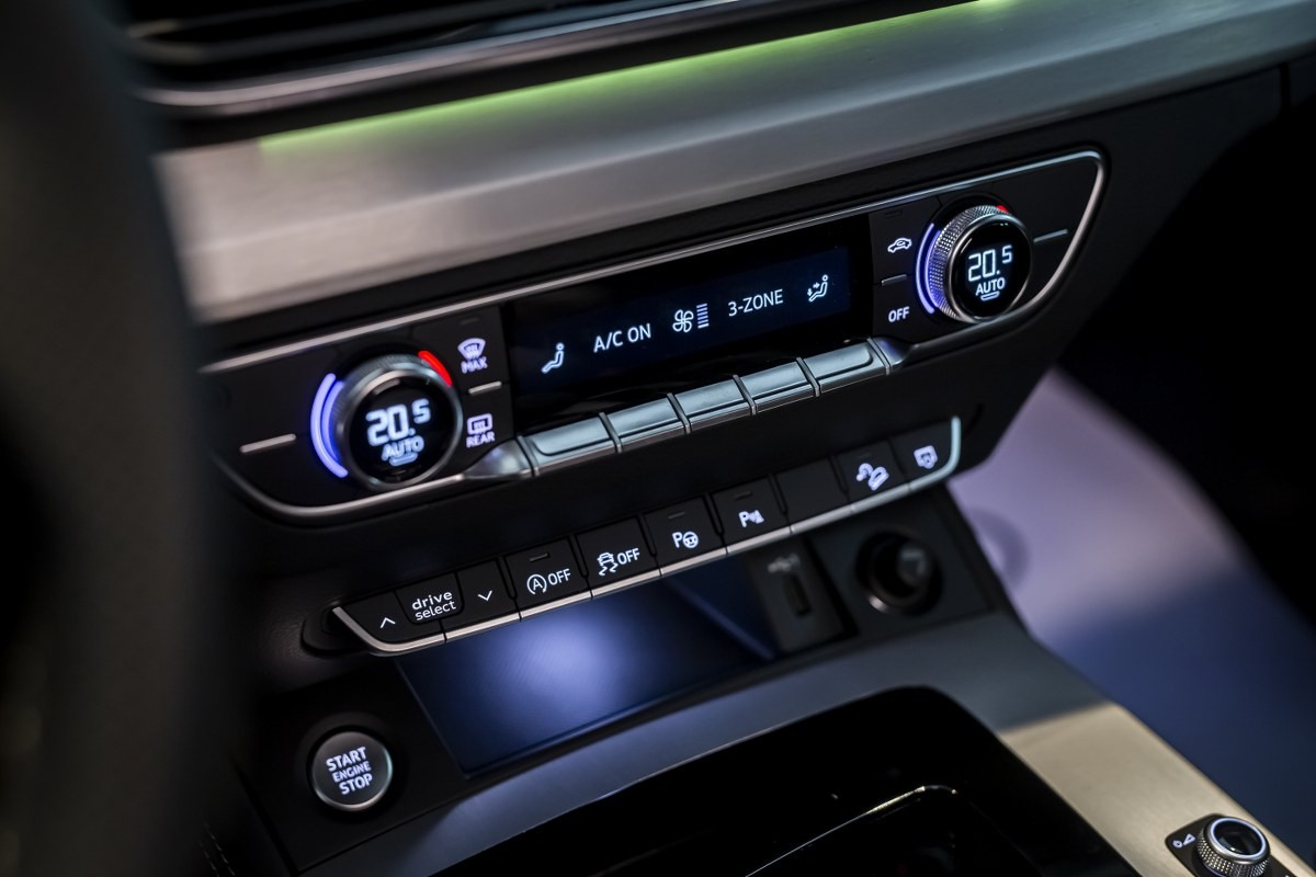 Bên cạnh đó, Audi bổ sung hệ thống điện Mild Hybrid 12V giúp tiết kiệm nhiên liệu tốt hơn. Bộ máy khởi động/phát điện chạy bằng dây đai (BGS) kết hợp cùng bộ pin lithium-ion nhỏ giúp thu hồi năng lượng trong quá trình phanh và nạp lại vào ắc quy. Công nghệ MHEV cũng cho phép động cơ tạm dừng hoạt động với chế độ Start-Stop được kích hoạt từ tốc độ 22 km/h.