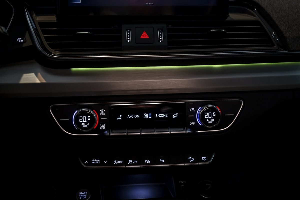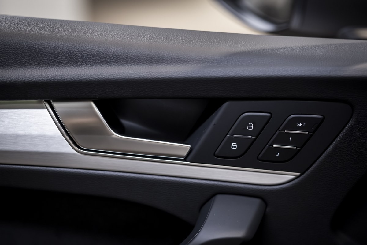 Vào bên trong, nội thất của Q5 Sportback tương đồng với phiên bản Q5 SUV, hiện đại và tinh tế. Toàn bộ ghế ngồi sử dụng chất liệu kết hợp sợi/da Dinamica Frequenz, hàng ghế trước được thêu dập nổi logo chữ S. Vô-lăng ba chấu thiết kế D-Cut, tích hợp nhiều phím chức năng và lẫy chuyển số phía sau. Đồng hồ sau vô-lăng dạng kỹ thuật số với màn hình virtual cockpit 12,3 inch hiển thị trực quan.