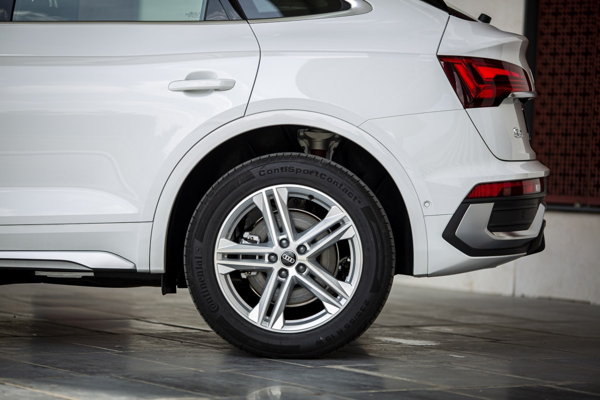 Phần đuôi xe trông thể thao hơn phiên bản SUV truyền thống nhờ cánh lướt gió mới cùng cản sau to bản. Xe đi kèm bộ mâm 19 inch 5 chấu kép hình ngôi sao cùng bộ lốp kích thước 235/55 R19. Tại Việt Nam, Audi Q5 Sportback sẽ có 11 tùy chọn màu sắc gồm ba màu tiêu chuẩn là Trắng Ibis, Đen Brilliant, Xám Quantum, và 8 màu ánh kim gồm Xanh District, Bạc Floret, Trắng Glacier, Đen Mythos, Xanh Navarra, Xám Manhattan, Đỏ Matador, Xanh Ultra.