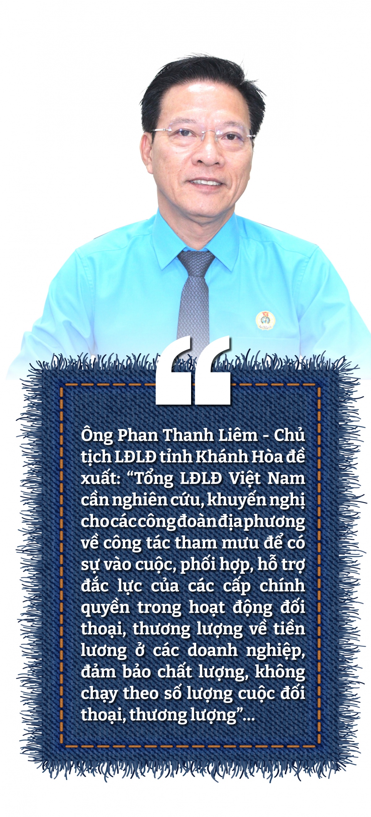 Ông Nguyễn Thành Đô cũng đề nghị Tổng LĐLĐ Việt Nam cần có đánh giá chính xác cơ cấu thu nhập của công nhân lao động ngành Dệt may để thương lượng hiệu quả, đảm bảo quyền lợi cho họ trong thời gian tới. Đồng thời, các khuyến cáo đưa ra trên cơ sở phân tích kết quả khảo sát cần phải rõ các giải pháp của mỗi cấp công đoàn, mỗi địa phương... Đơn cử như, trong đối thoại về tiền lương, thưởng, thu nhập, phúc lợi, có 79,9% công đoàn cơ sở phản hồi đã nhận được hỗ trợ của công đoàn cấp trên khi đối thoại, thương lượng. Trong đó có 65,1% ý kiến đánh giá cao và rất cao vai trò hỗ trợ của công đoàn cấp trên, còn lại 32,7% ý kiến đánh giá ở mức bình thường. Hay trong xây dựng thang lương, bảng lương, có 78% công đoàn cơ sở phản hồi đã nhận được hỗ trợ của công đoàn cấp trên khi đối thoại, thương lượng. Trong đó có 63,9% ý kiến đánh giá cao và rất cao vai trò hỗ trợ của công đoàn cấp trên, còn lại 33,2% ý kiến đánh giá ở mức bình thường… “Như vậy cần phải rà soát lại quy trình, nội dung, phương pháp hỗ trợ của công đoàn cấp trên đối với công đoàn cơ sở. Từ đó đưa ra các giải pháp cụ thể cho cả công đoàn cấp trên và công đoàn cơ sở trong các khâu này”, ông Nguyễn Thành Đô khẳng định thêm.