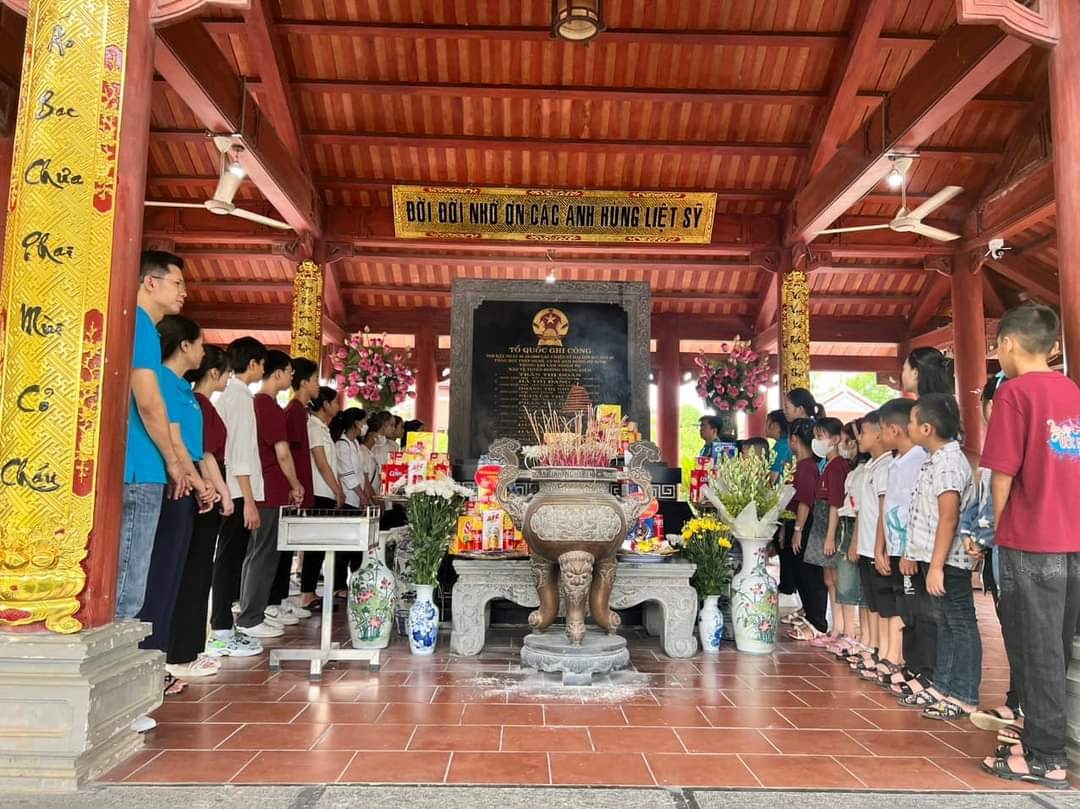 | Các cháu học sinh, sinh viên thắp hương tưởng nhớ các anh hùng liệt sỹ. Ảnh: ĐVCC |