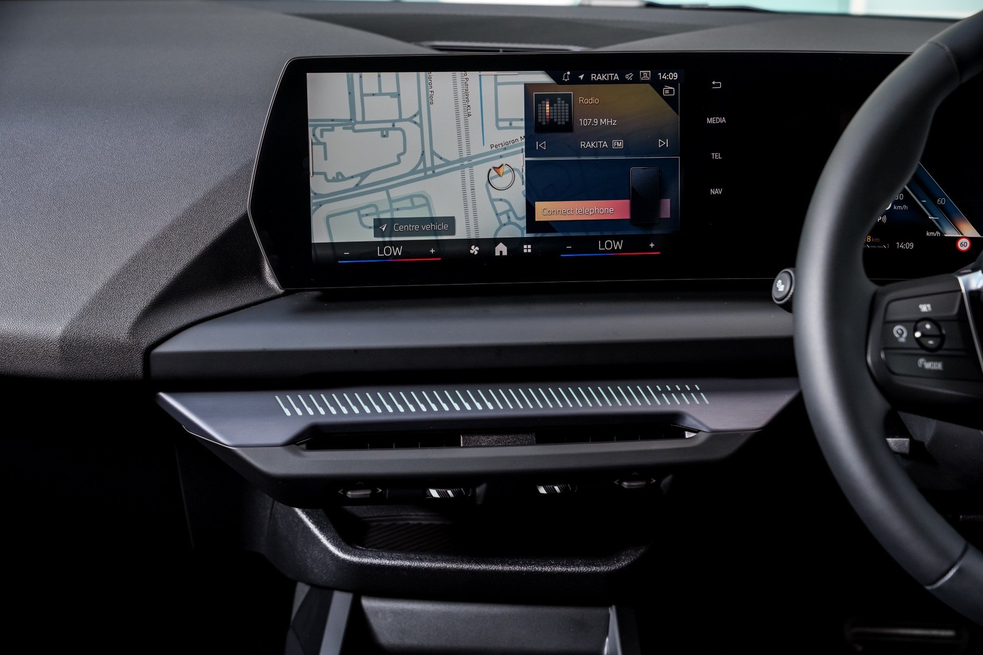 Khoang lái gây ấn tượng với màn hình cong kết hợp: cụm đồng hồ 10,25 inch và màn hình giải trí 10,7 inch, tích hợp hệ điều hành BMW iDrive 9 mới. Hệ thống điều khiển điều hòa được tối giản hóa, kết hợp cùng cần số điện tử và phím bấm cơ học, giữ lại sự quen thuộc cho người dùng trung thành của BMW.