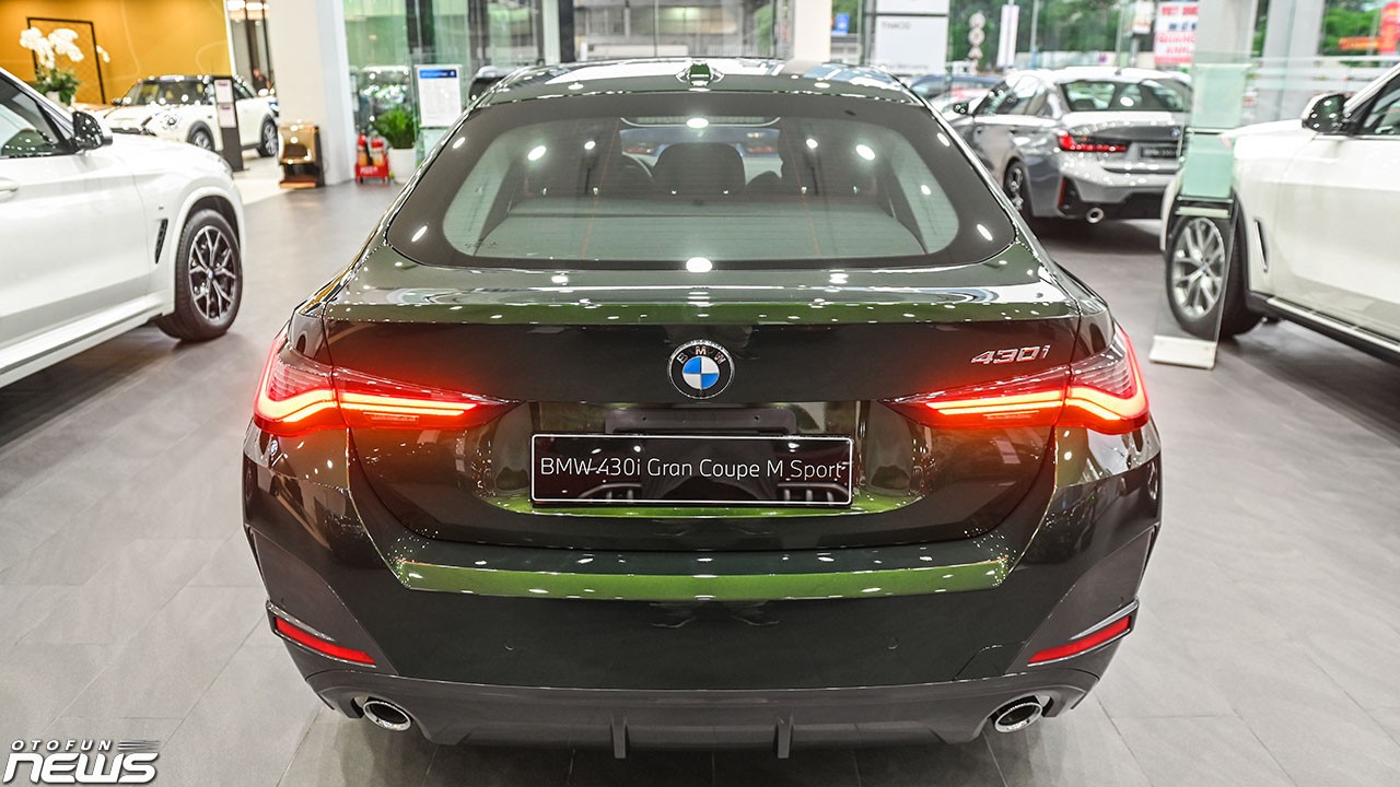 BMW 430i Gran Coupe tại Việt Nam đi kèm gói trang bị M-Sport thể thao. Tùy chọn này cung cấp bodykit thể thao bao gồm cản trước, cản sau, khu hút gió trước và bộ khuếch tán ở đuôi xe. Bộ mâm M-Sport 5 chấu kép 18 inch, đi kèm cùm phanh M-Sport màu xanh. Cuối cùng, logo ///M ở hai bên hông cũng là chi tiết không thể bỏ qua.