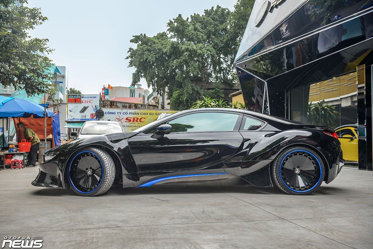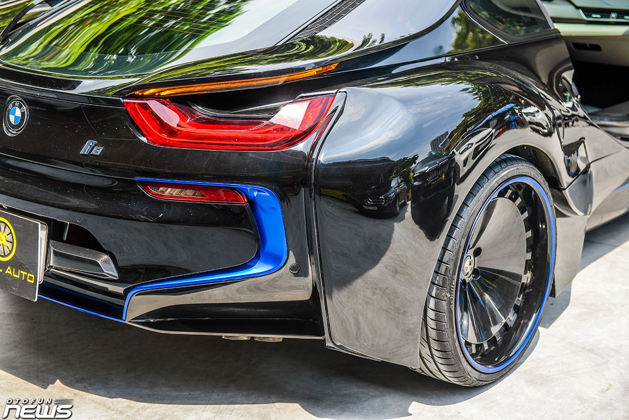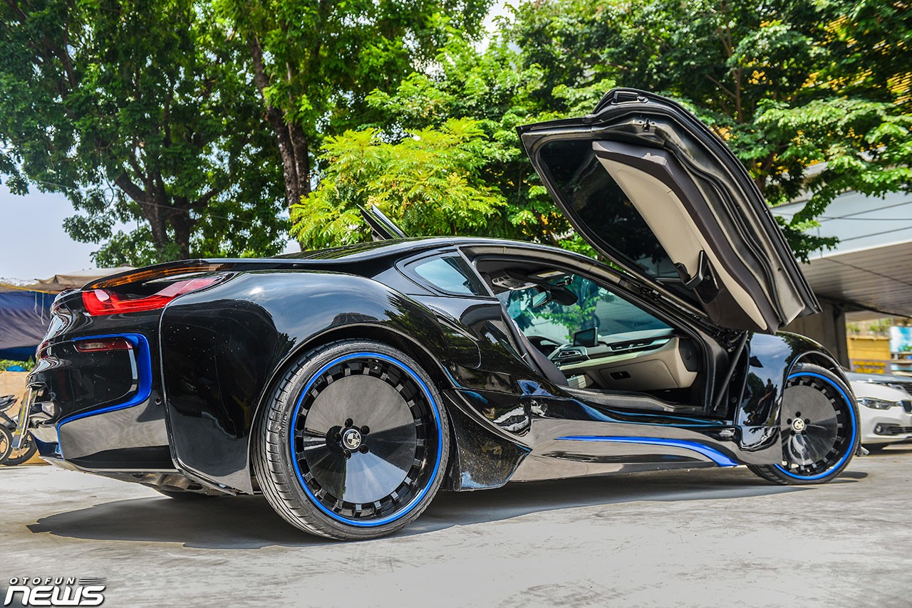 Để trở nên khác biệt, một chiếc BMW i8 đã được độ lại để trở nên ấn tượng hơn. Chiếc xe này sở hữu một diện mạo cực "ngầu" với màu đen toàn bộ. Toàn bộ thân xe, các hốc gió, mâm xe, cánh gió đều mang màu đen.