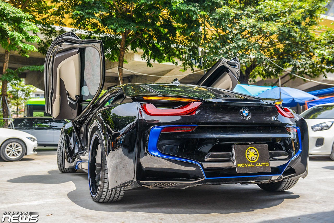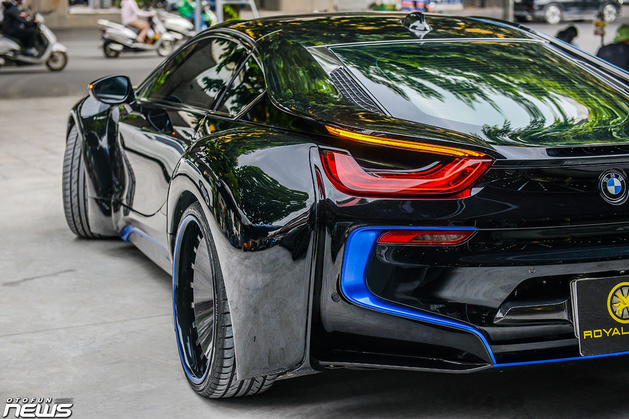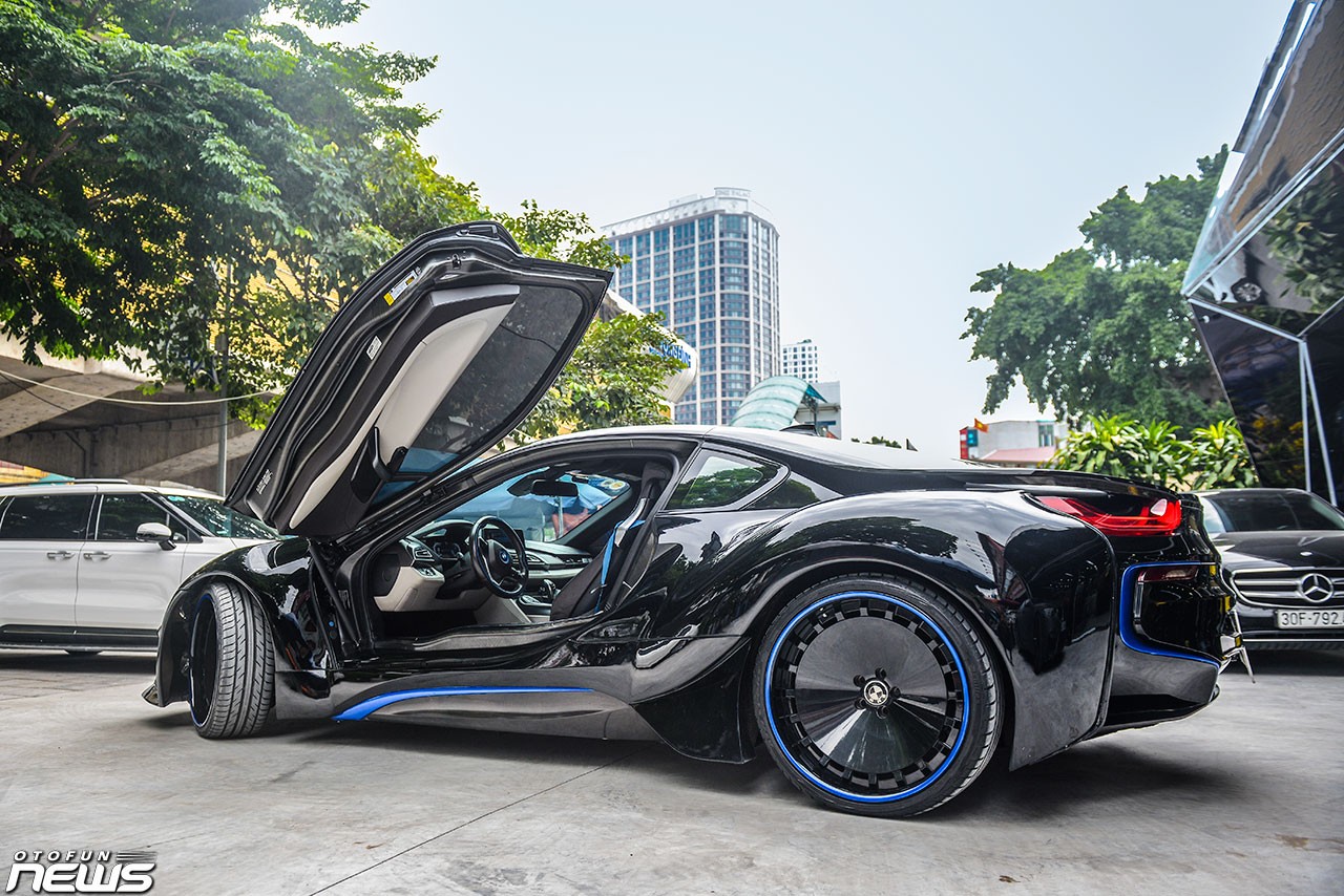 Để trở nên khác biệt, một chiếc BMW i8 đã được độ lại để trở nên ấn tượng hơn. Chiếc xe này sở hữu một diện mạo cực "ngầu" với màu đen toàn bộ. Toàn bộ thân xe, các hốc gió, mâm xe, cánh gió đều mang màu đen.