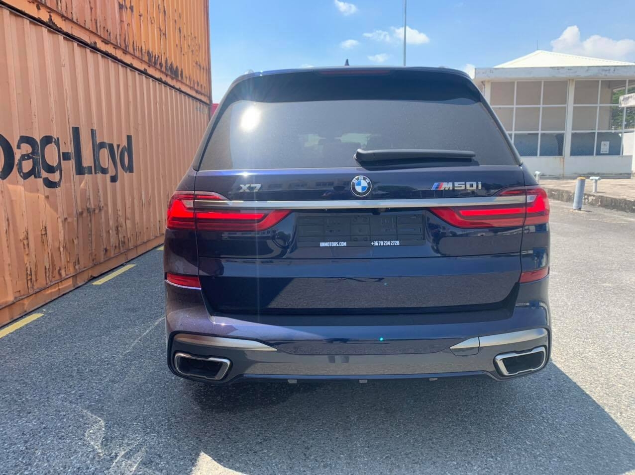 Phần đuôi của BMW X7 mang trên mình nhiệm vụ là nổi bật hơn nữa kích thước đồ sộ của một mẫu SAV hàng đầu. Một thanh chrome nằm ngang nối liền hai bên đèn hậu, với mục đích chính nhấn mạnh hơn chiều rộng của chiếc xe. Thiết kế này trước đây chỉ xuất hiện duy nhất trên BMW 7 Series sedan – mẫu xe cao cấp nhất của thương hiệu, nay đã được đưa lên BMW X7 hoàn toàn mới. Với gói thiết kế Pure Excellence, hệ thống ống xả kép và cản trước, cản sau đều được viền chrome phủ bóng, mang đến những điểm nhấn độc quyền hơn nữa cho BMW X7.