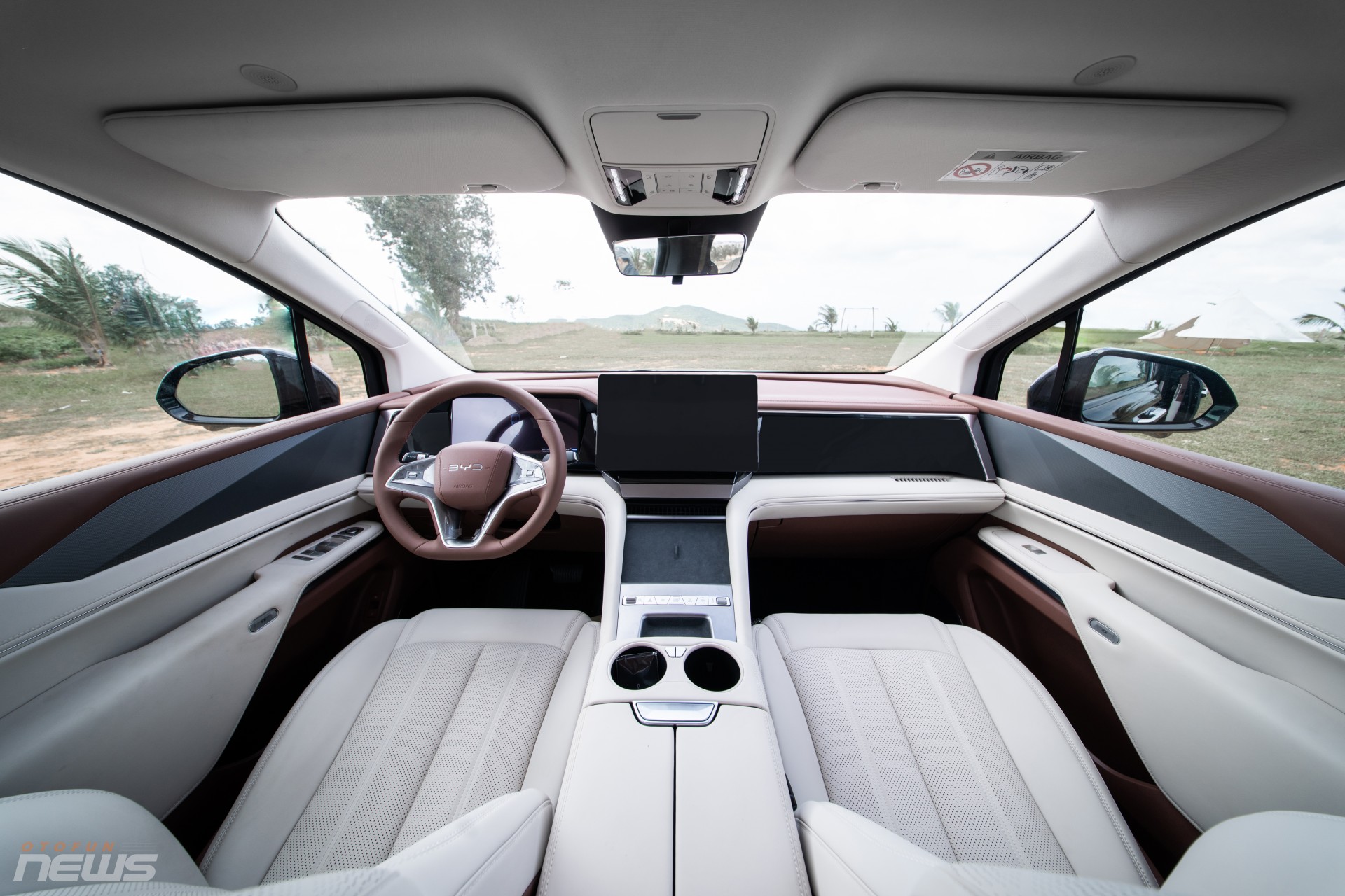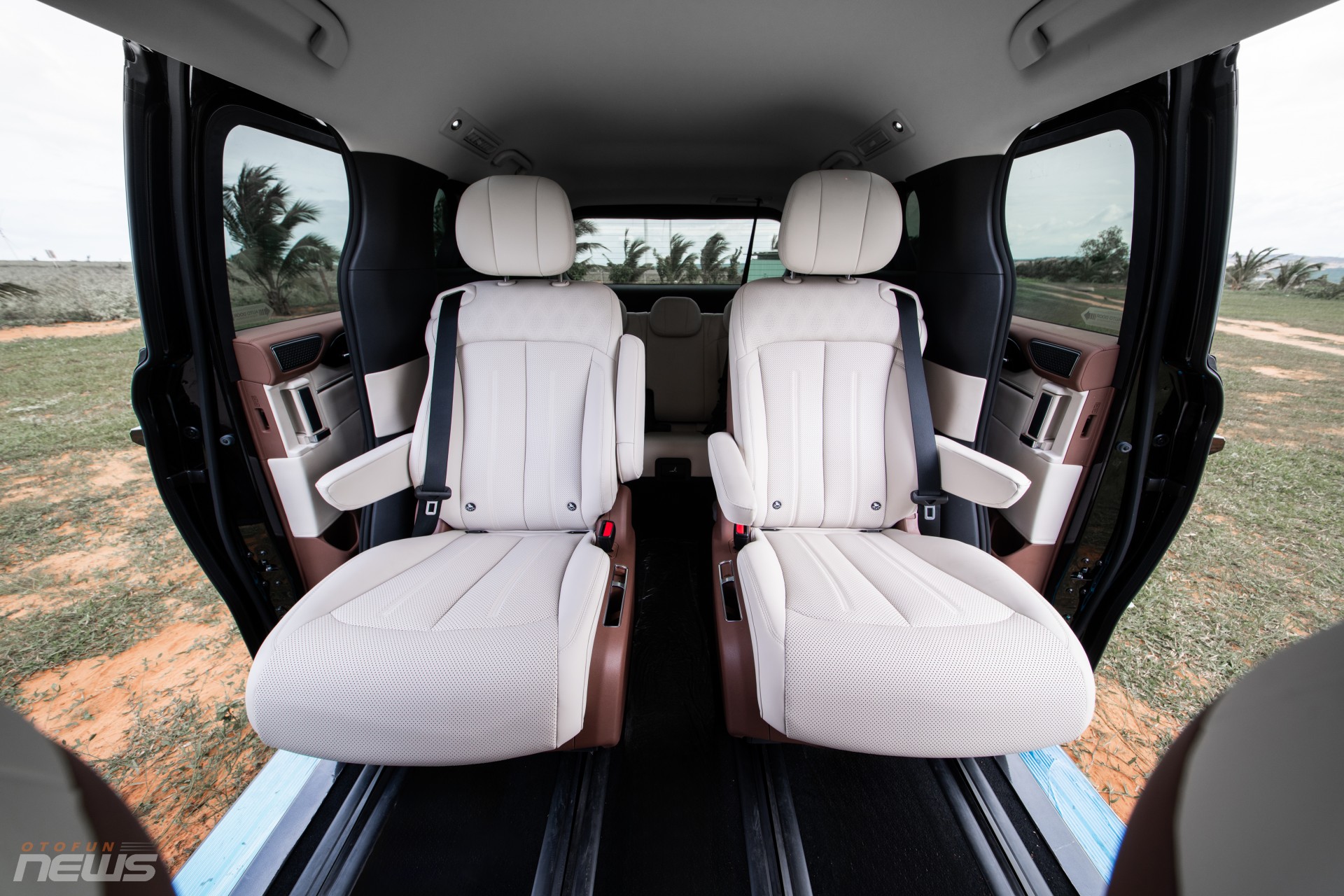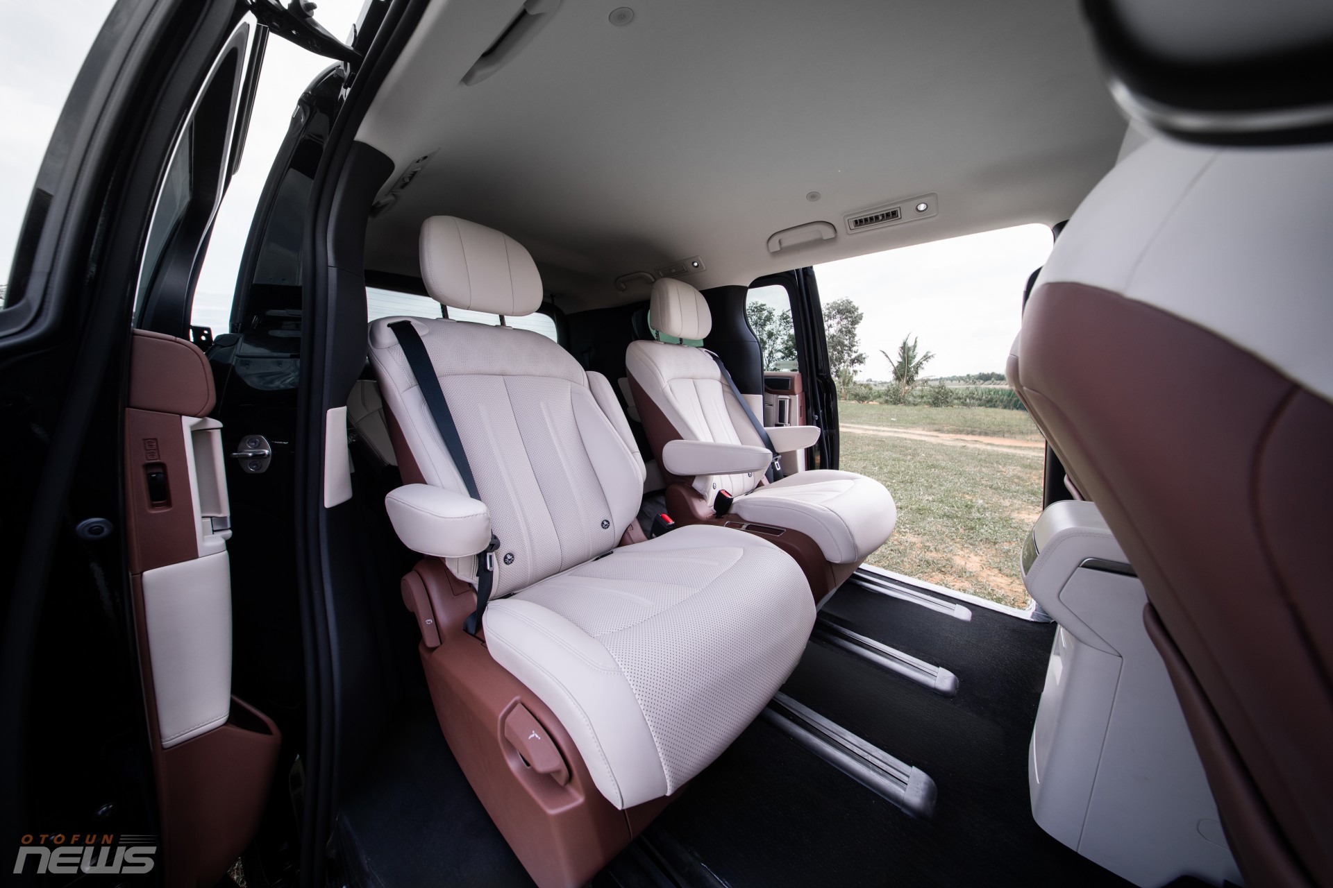Khoang nội thất gồm 3 hàng ghế bọc da, hàng ghế giữa kiểu thương gia có chỉnh điện, massage, bàn gập và tủ lạnh mini. Trung tâm điều khiển là màn hình xoay 15,6 inch hỗ trợ điều khiển giọng nói tiếng Việt đa vùng, hệ thống lọc PM2.5 và khoang hành lý hơn 2.000 lít khi gập hàng ghế sau.