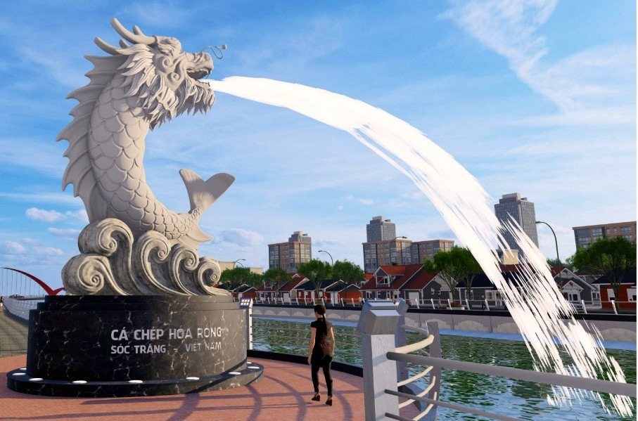 | Một phần phối cảnh cá chép hóa rồng dự kiến xây dựng tại thành phố Sóc Trăng. Ảnh: Báo Lao động |