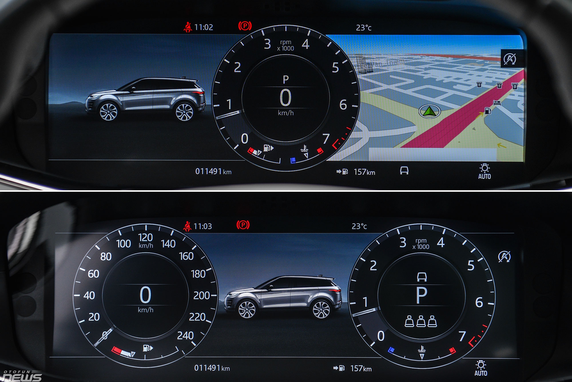 Cụm đèn chiếu sáng kèm đèn định vị ban ngày hay cụm đèn hậu đều thiết kế mỏng hơn. Evoque mới sử dụng công nghệ đèn LED Matrix cho độ sáng tốt. Một điểm nhấn khác biệt là kiểu tay nắm cửa thu hoàn toàn vào thân xe giống hệt chiếc Velar. Xe sử dụng bộ mâm kích thước 20 inch 5 chấu kiểu 5079.