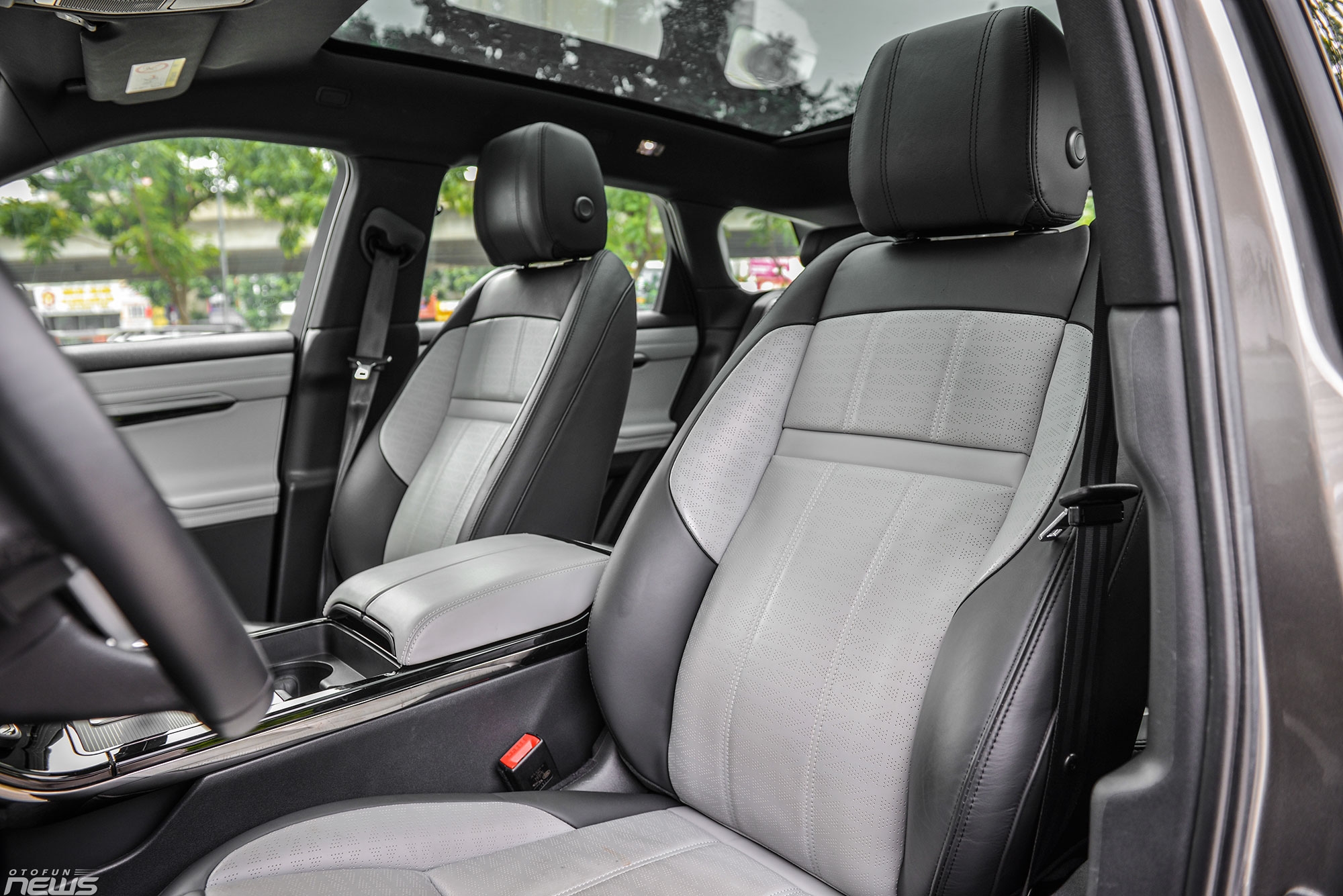 Ở lần nâng cấp này, nội thất Evoque mới cũng được thay đổi một số chi tiết đáng chú ý. Chiếc xe này sử dụng nội thất bọc da Windsor giá gần 32 triệu đồng, phối hai màu trắng đen Ebony có giá gần 100 triệu đồng. Ghế ngồi chỉnh điện 16 hướng kèm nhớ vị trí, có lỗ thông hơi làm mát.