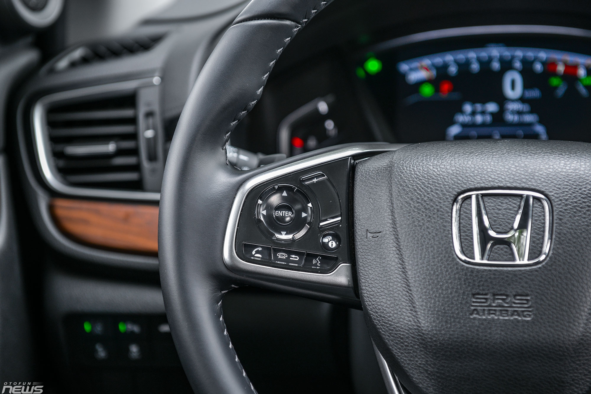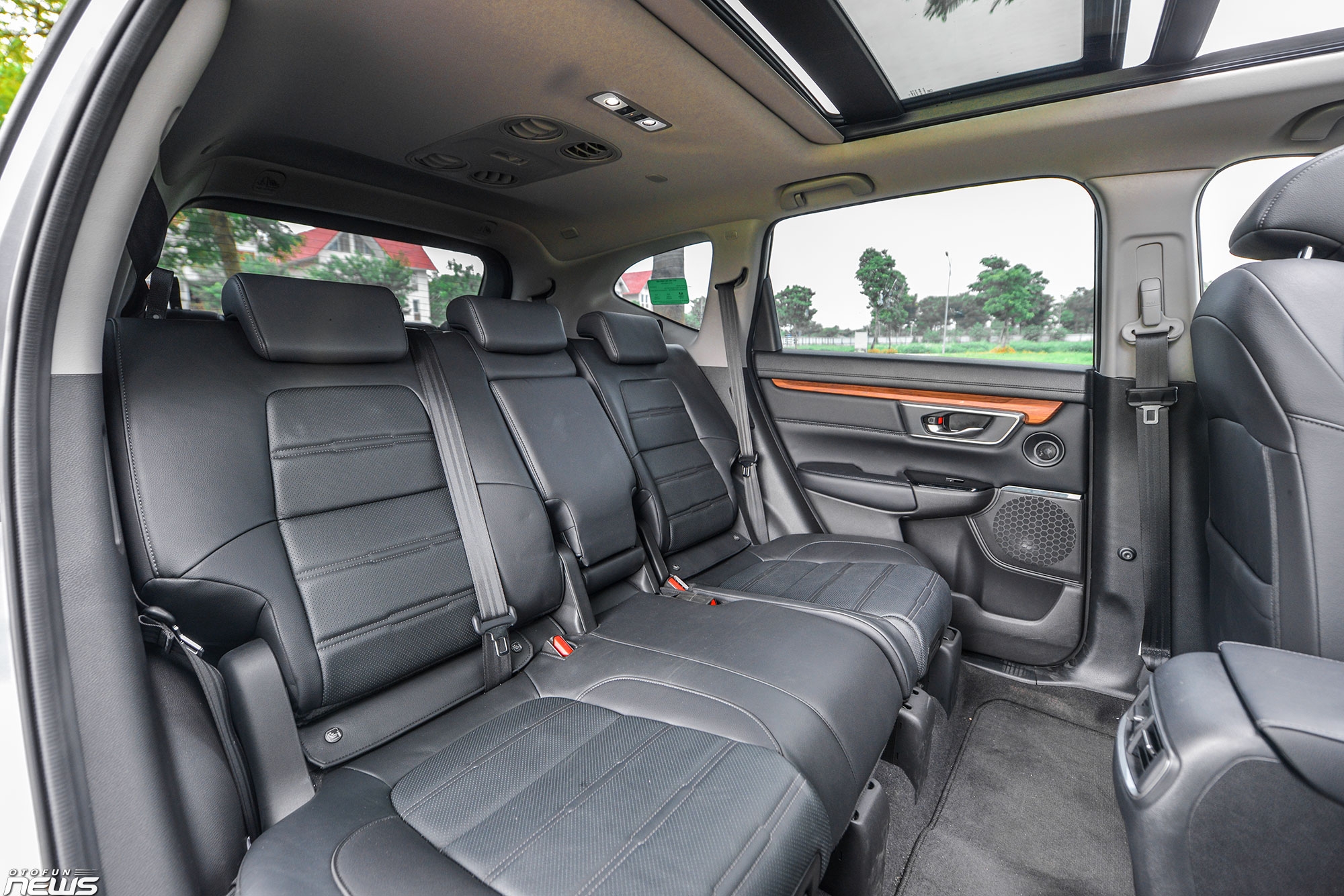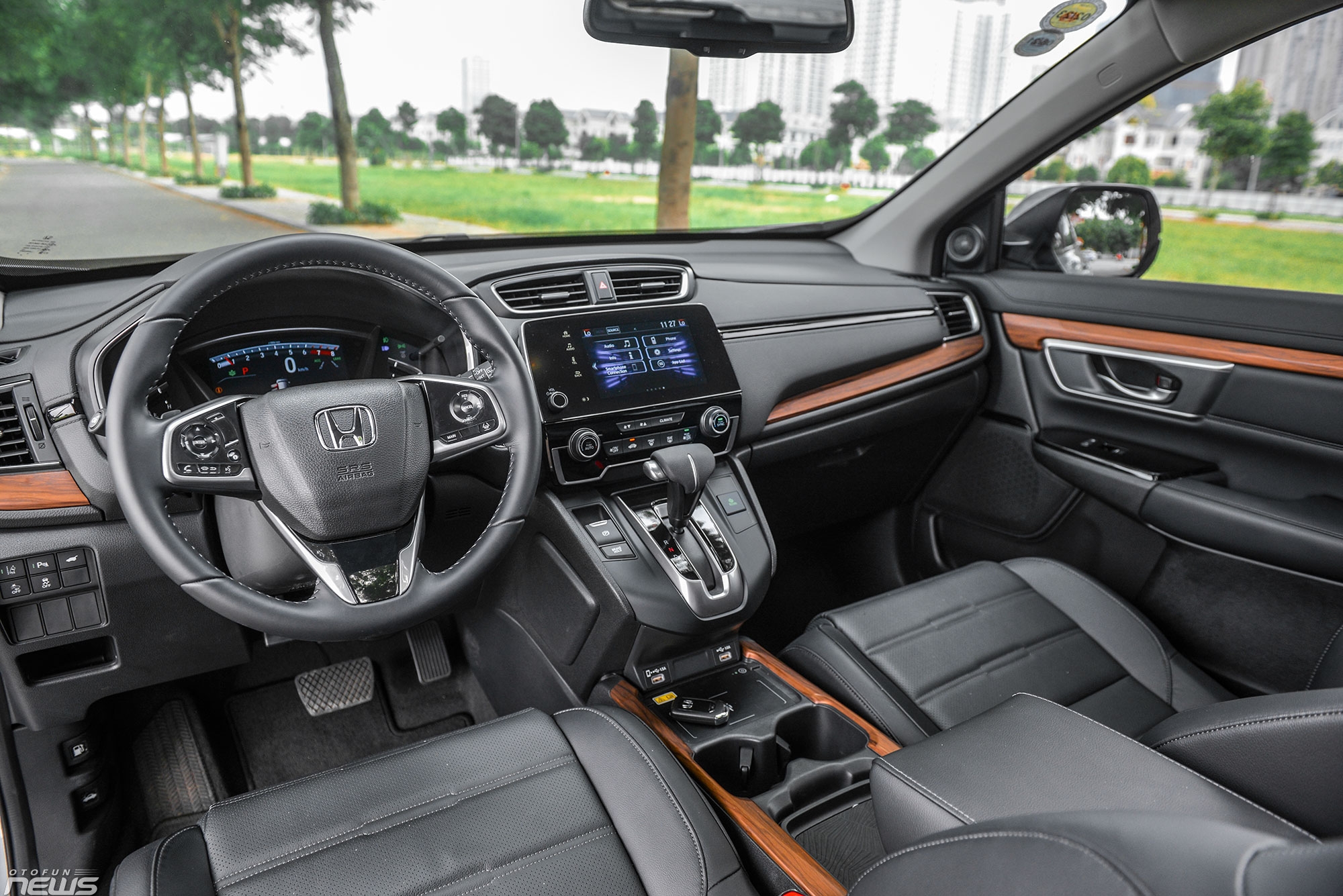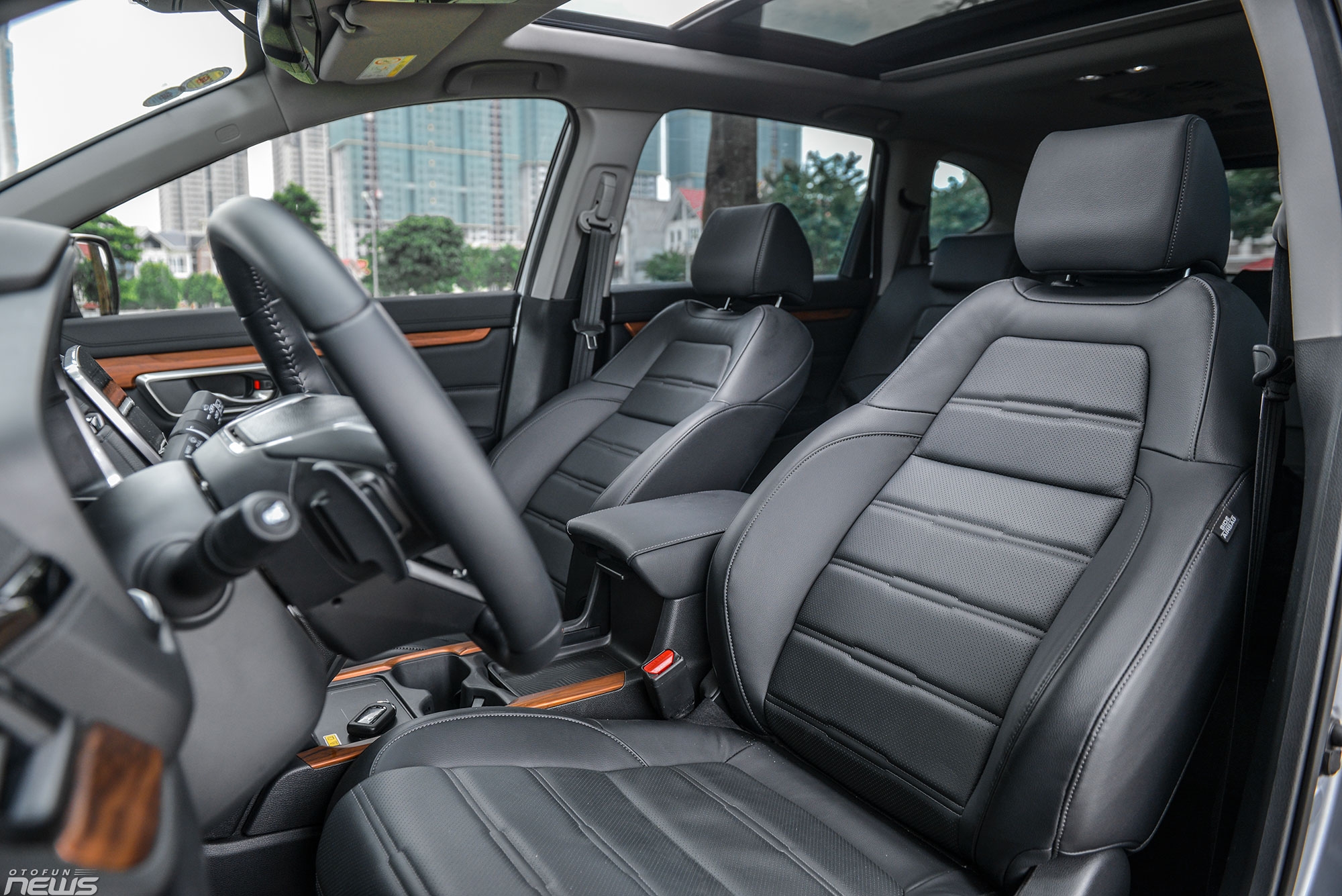 Vào bên trong, tổng thể nội thất Honda CR-V vẫn giữ nguyên cấu trúc bố trí cũ. Ghế ngồi bọc da toàn bộ, ghế lái chỉnh điện. Xe trang bị 7 ghế ngồi dạng 5+2, hai ghế sau phù hợp với trẻ em hoặc người cao dưới 1m65. Khác với trước, vô-lăng xe tích hợp thêm cụm phím bấm hệ thống Honda Sensing ở bên phải. Ngoài ra, HVN trang bị thêm sạc điện thoại không dây, là điều cần thiết khi hiện nay nhiều người sở hữu smartphone.