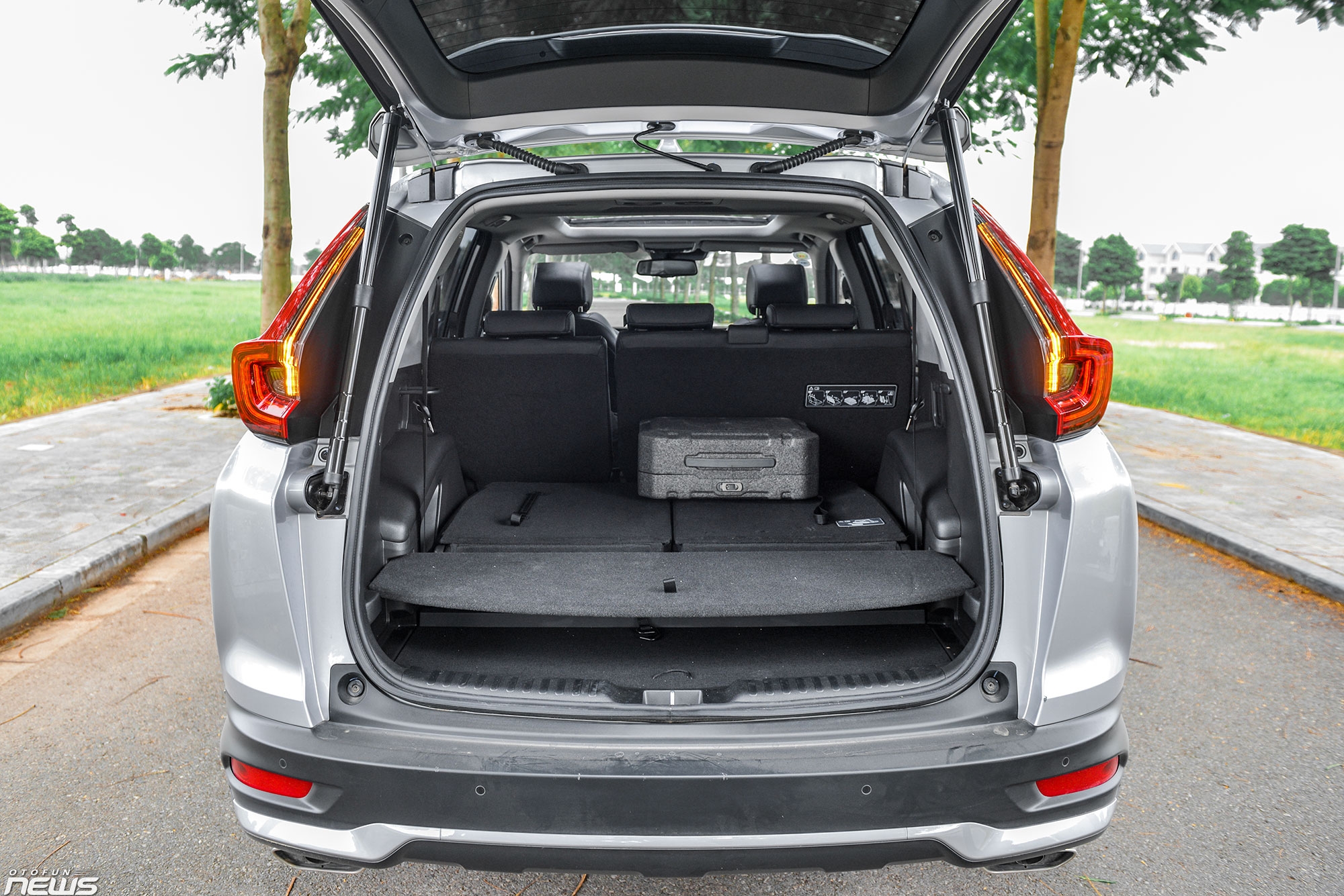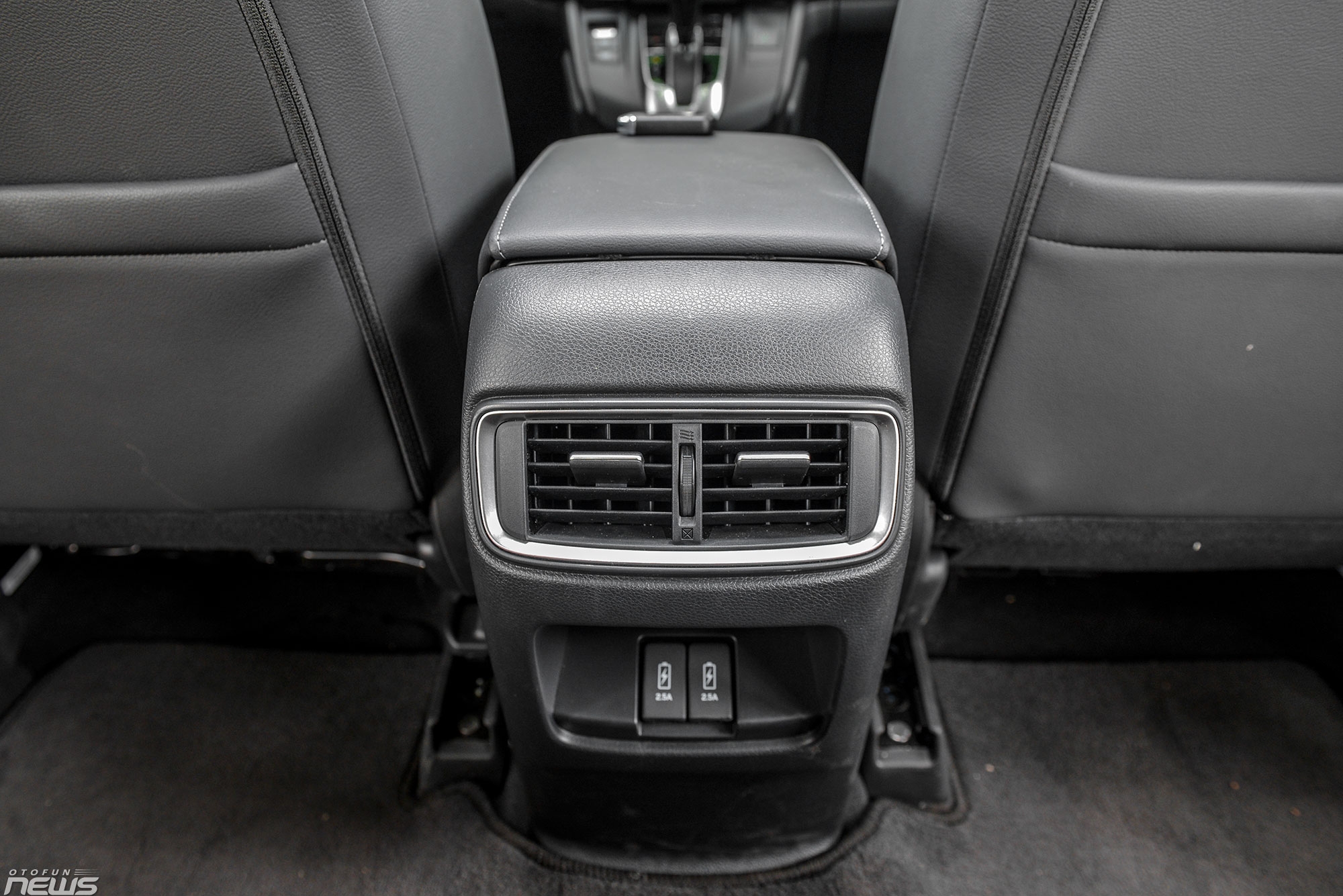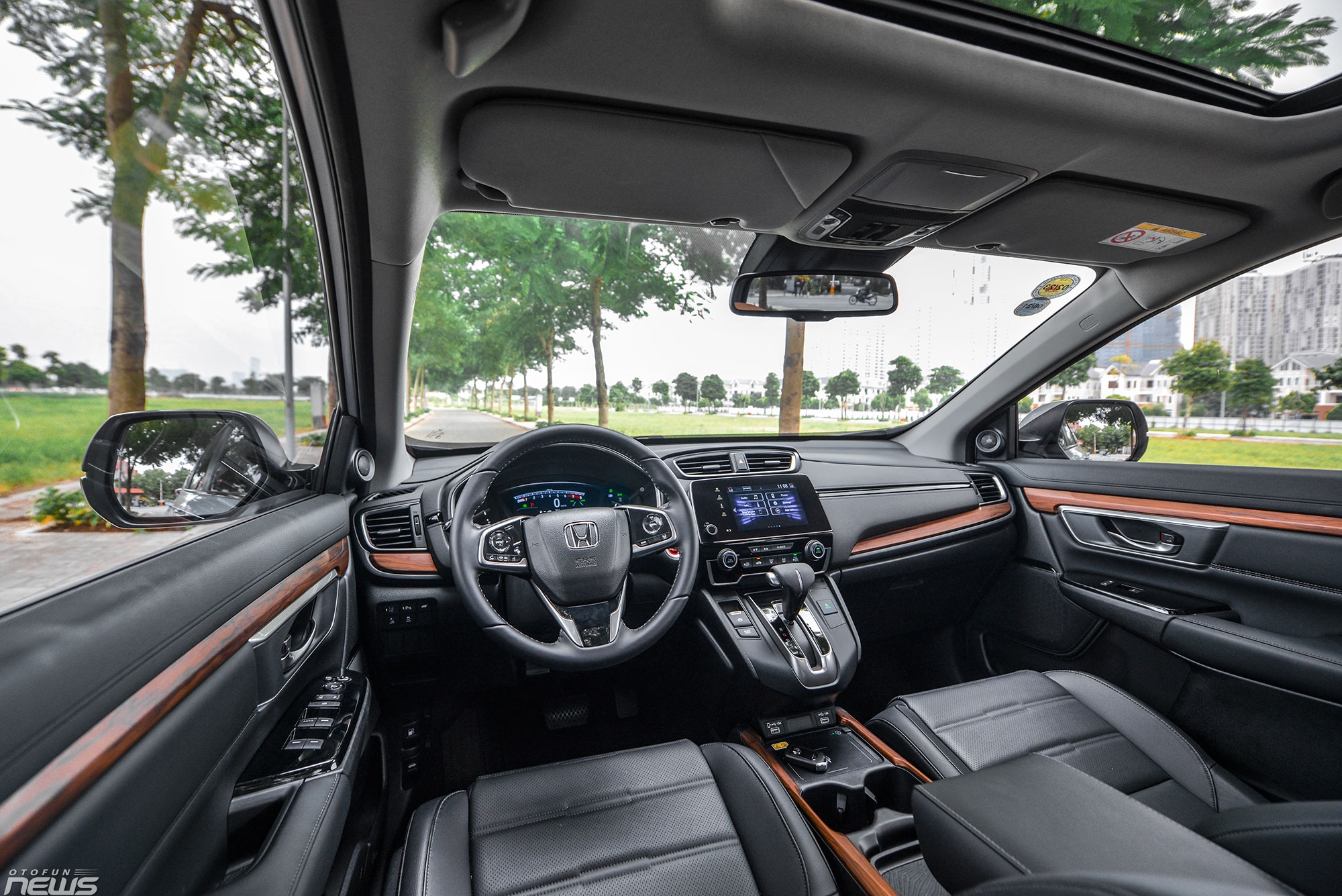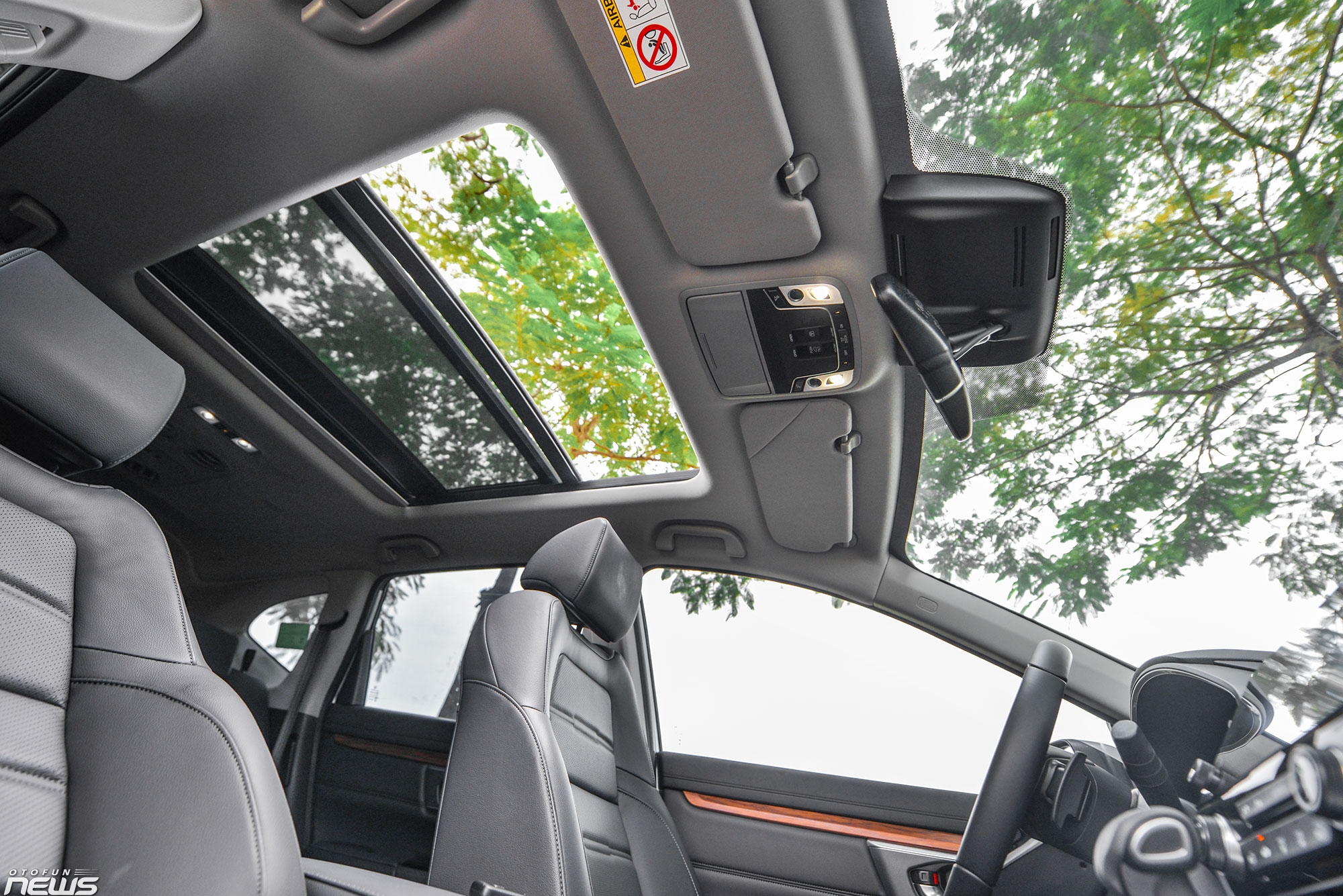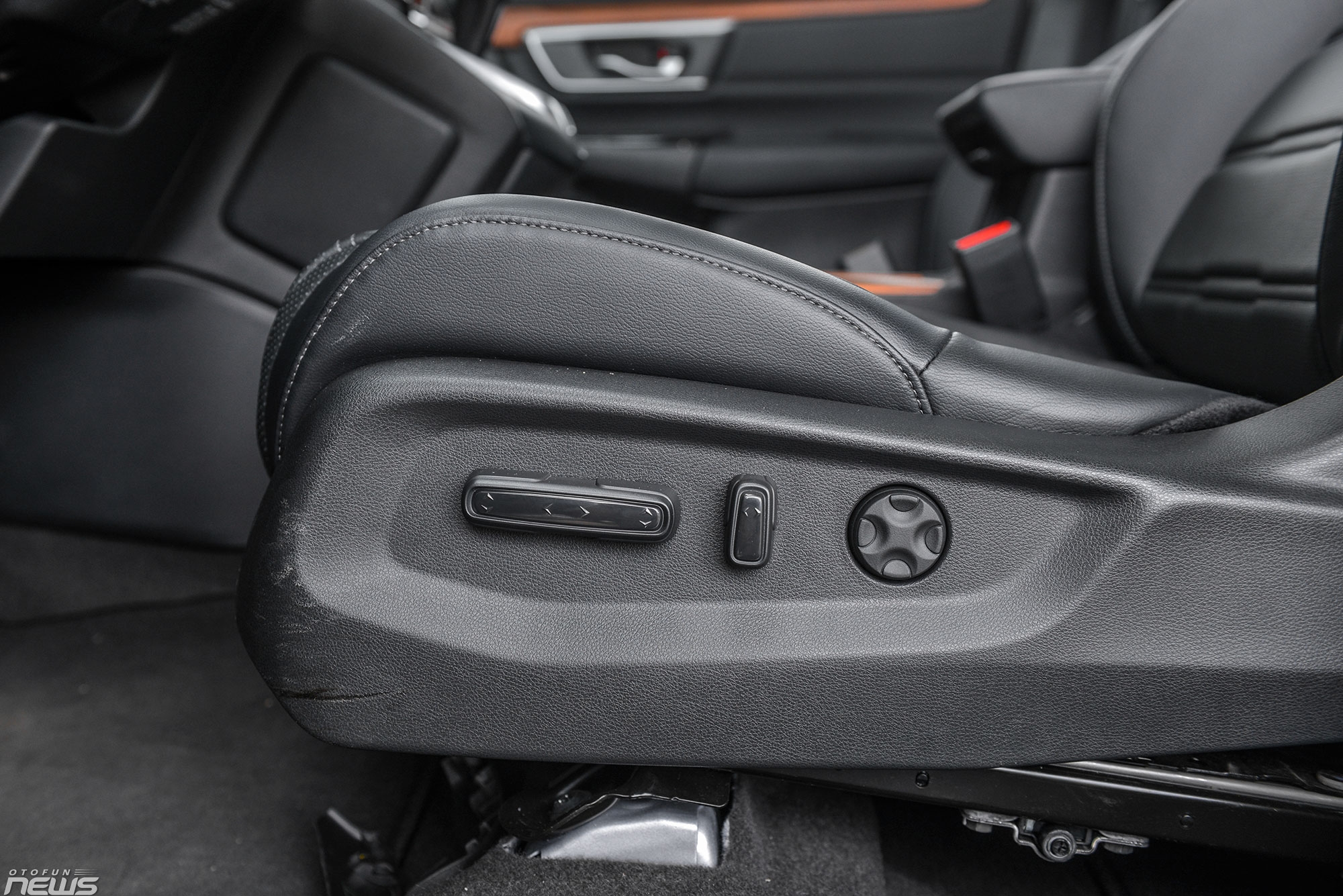Vào bên trong, tổng thể nội thất Honda CR-V vẫn giữ nguyên cấu trúc bố trí cũ. Ghế ngồi bọc da toàn bộ, ghế lái chỉnh điện. Xe trang bị 7 ghế ngồi dạng 5+2, hai ghế sau phù hợp với trẻ em hoặc người cao dưới 1m65. Khác với trước, vô-lăng xe tích hợp thêm cụm phím bấm hệ thống Honda Sensing ở bên phải. Ngoài ra, HVN trang bị thêm sạc điện thoại không dây, là điều cần thiết khi hiện nay nhiều người sở hữu smartphone.