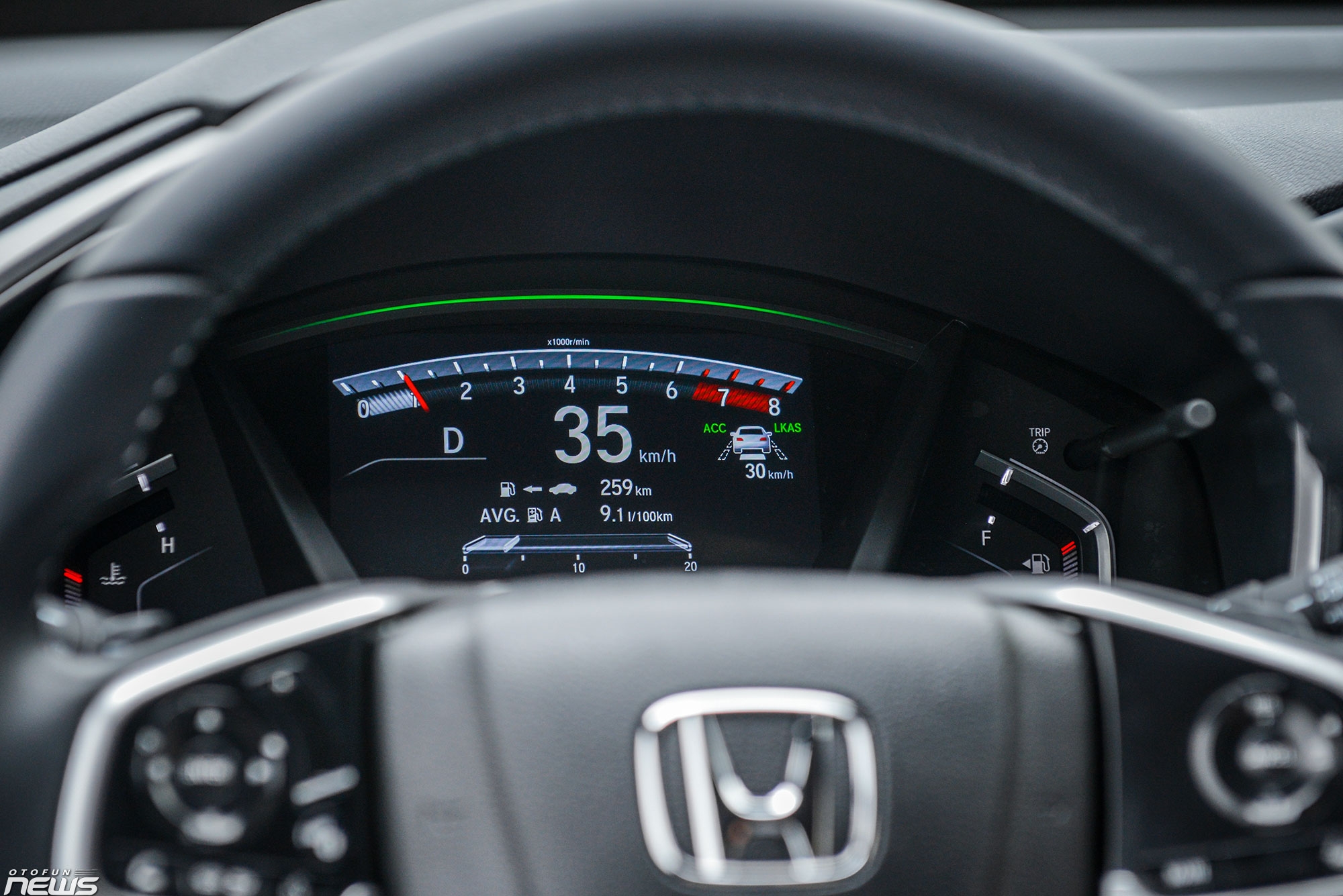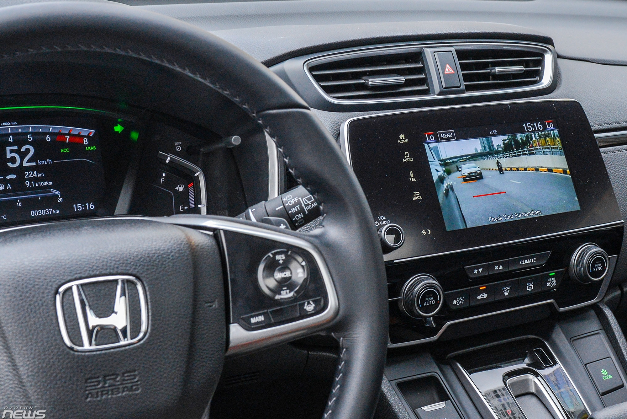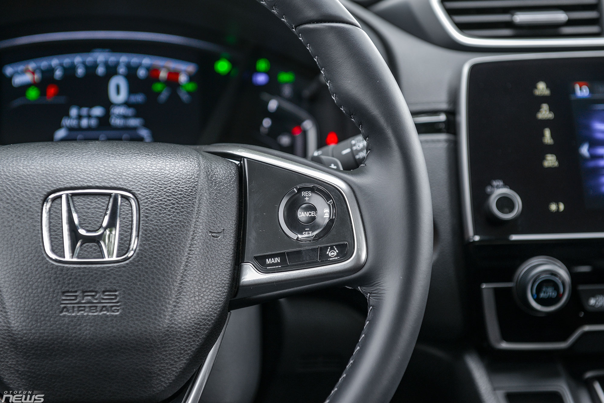 Trong quá trình trải nghiệm Honda CR-V mới, nhóm đánh giá xe OtoFun News đặc biệt ấn tượng với hệ thống kiểm soát hành trình thích ứng. Khi kích hoạt, xe sẽ chạy theo tốc độ đã cài đặt và giữ một khoảng cách cố định với xe phía trước. Nếu xe phía trước tăng hoặc giảm tốc, chiếc CR-V của mình cũng sẽ tăng tốc hoặc giảm tốc theo.
