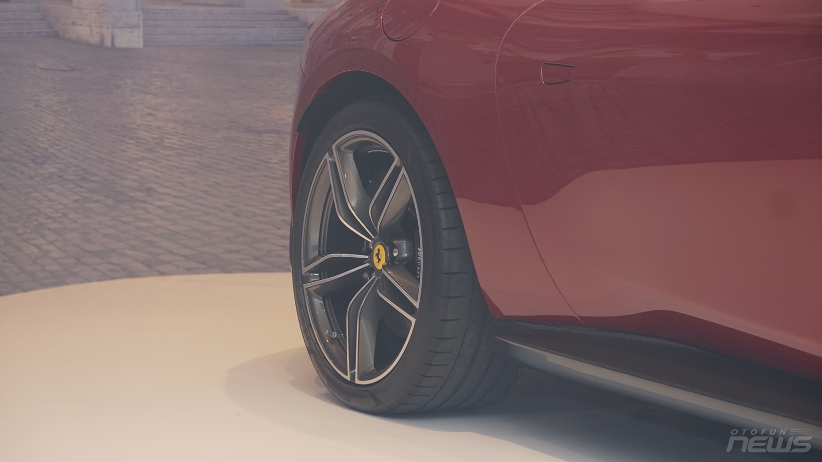 Ferrari Roma sử dụng bộ lốp trước có thông số 245/35ZR20 kết hợp cùng đĩa phanh 390 mm, lốp sau 285/35ZR20 kèm đĩa phanh 360 mm. Để tạo cái nhìn liền lạc, hãng xe Ý đã thiết kế tay nắm cửa ẩn vào trong trông rất thời trang.