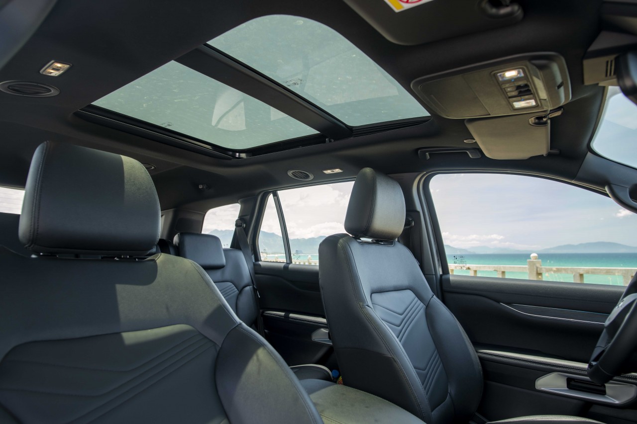 Không gian giữa hai ghế trước được tích hợp 2 hộc để cốc cố định, cùng với đó là 2 giá đỡ cốc có thể đóng/mở khi cần, sạc điện thoại không dây. Ghế lái có khả năng chỉnh điện 8 hướng. Hàng ghế thứ 2 có thể trượt xa hơn về phía trước, giúp việc tiếp cận hàng ghế thứ 3 trở nên dễ dàng hơn.