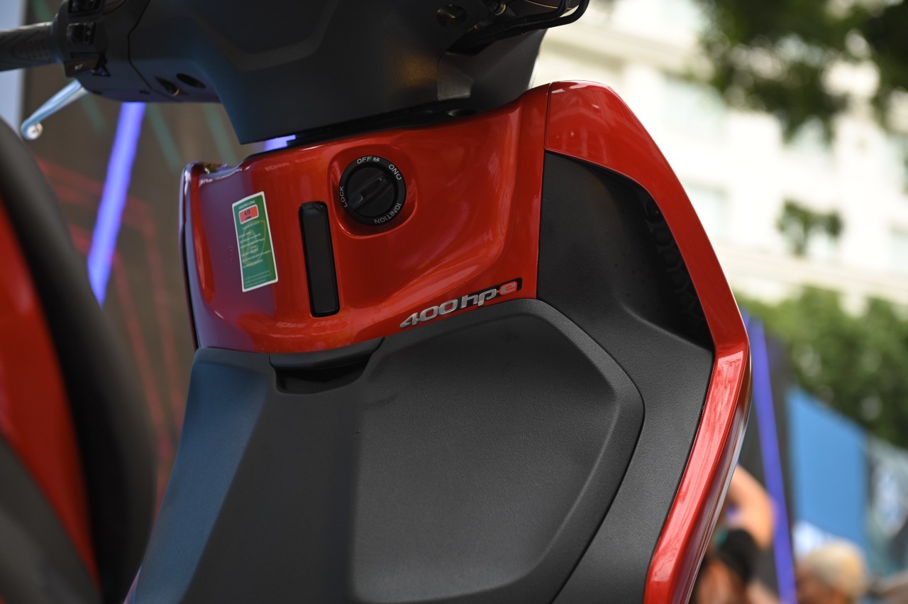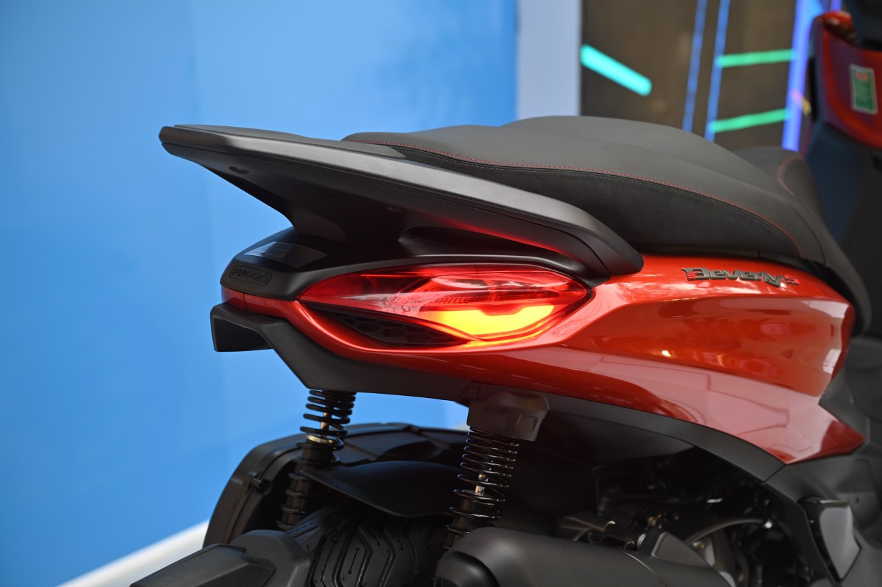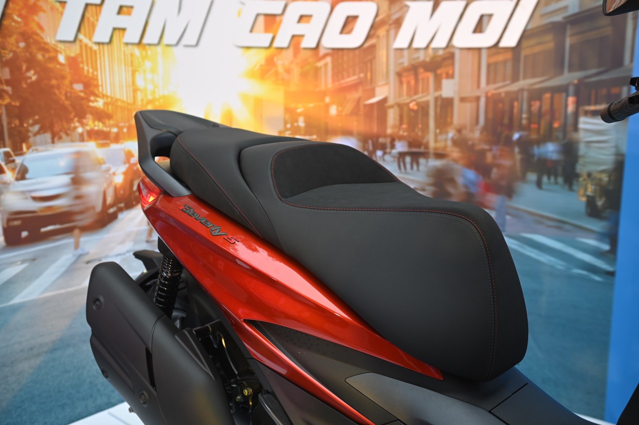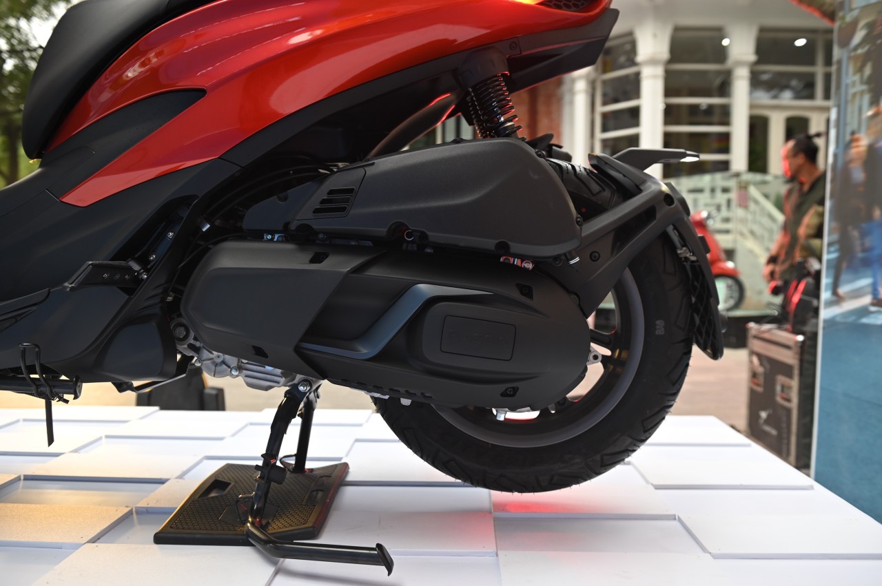 Vị trí bình xăng được đặt ở giữa sàn để chân không chỉ tiện lợi khi sử dụng, mà còn tạo cảm giác lái cân bằng hơn và giải phóng phần không gian dưới yên xe. Nhờ vậy, cốp xe lớn có thể chứa hai mũ bảo hiểm 3/4 và được trang bị thêm đèn chiếu sáng. Tay dắt sau kết hợp với giá đèo hàng; cốp trước tích hợp cổng sạc USB và móc treo đồ.