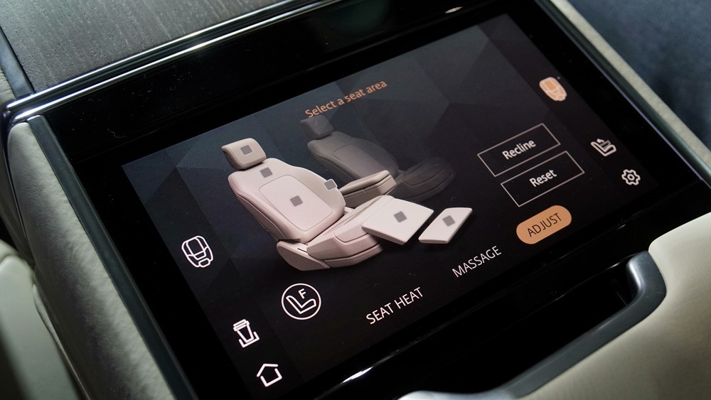 Màn hình điều khiển cảm ứng ở hàng ghế sau 8-inch được gắn ở tựa tay trung tâm của Hệ thống ghế sau hạng thương gia executive class giúp điều khiển nhanh chóng và trực quan để có được vị trí ngồi hoàn hảo, nâng cao trải nghiệm sang trọng cho hàng ghế sau.