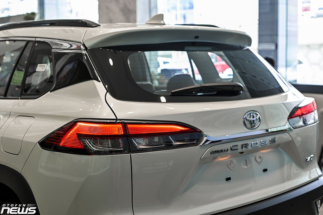 Thân xe Corolla Cross 2024 thu hút với những đường gân dập nổi chạy dọc thân xe, tạo sự mạnh mẽ và cơ bắp. Phần đuôi xe vuông vức với cụm đèn hậu LED thanh mảnh, nối liền bởi thanh mạ crom tạo hiệu ứng chữ X. Cản sau cỡ lớn, tích hợp đèn phản xạ giúp tăng khả năng cảnh báo cho phương tiện phía sau.
