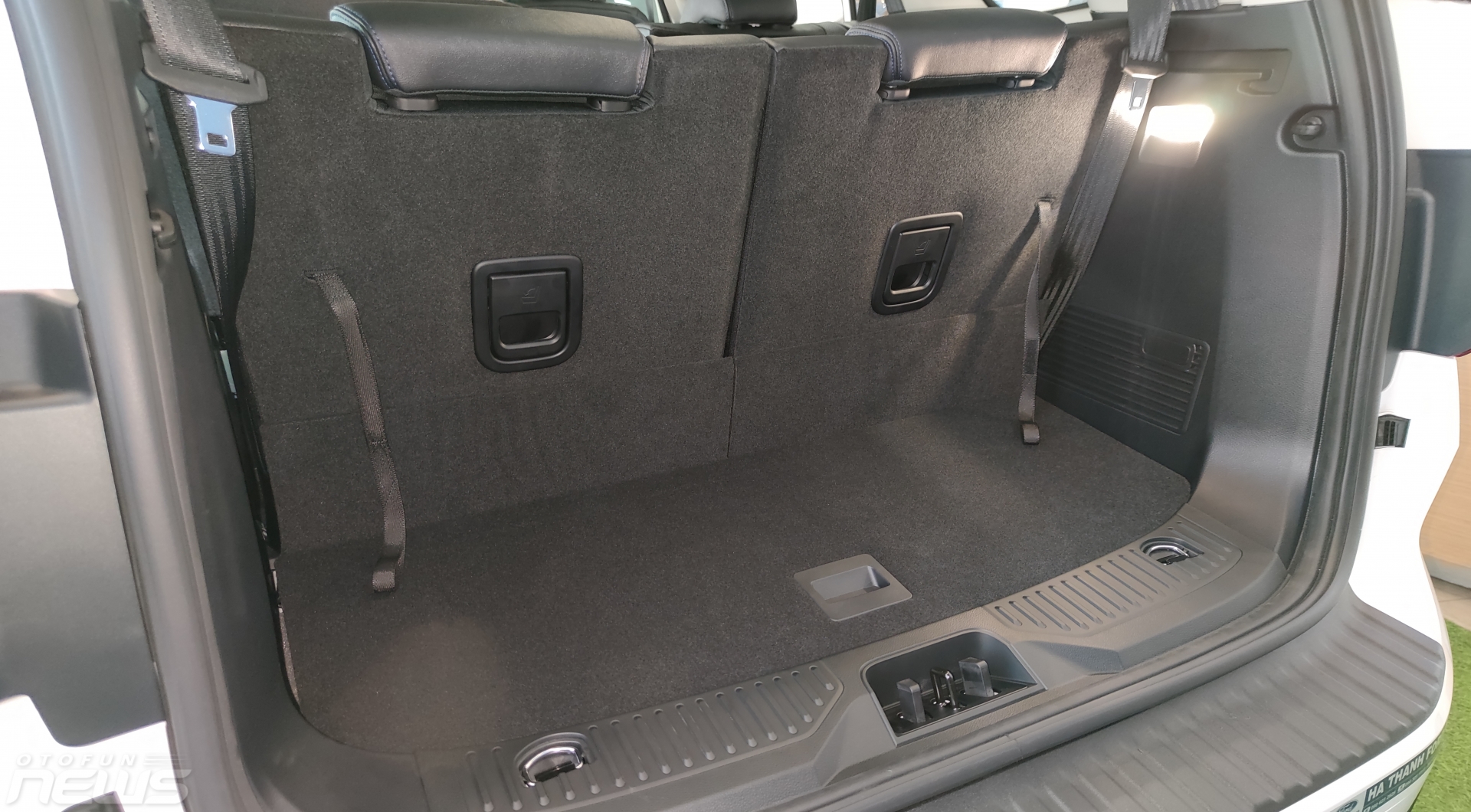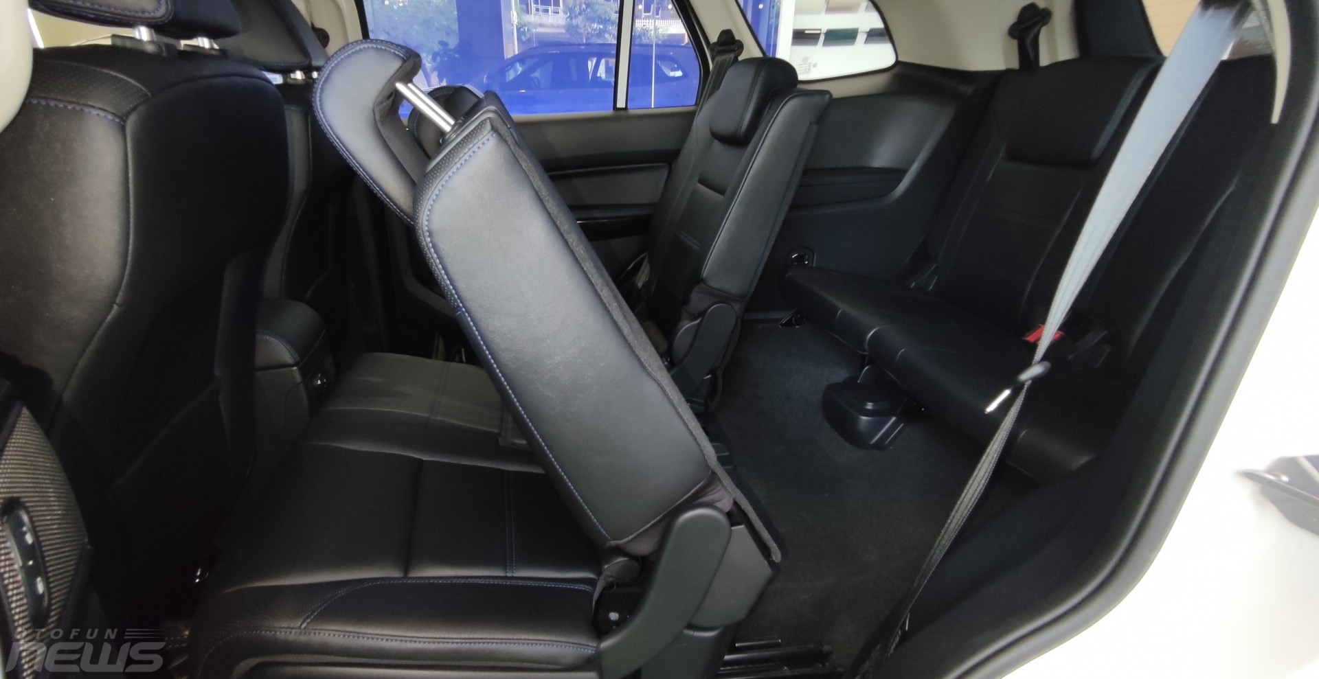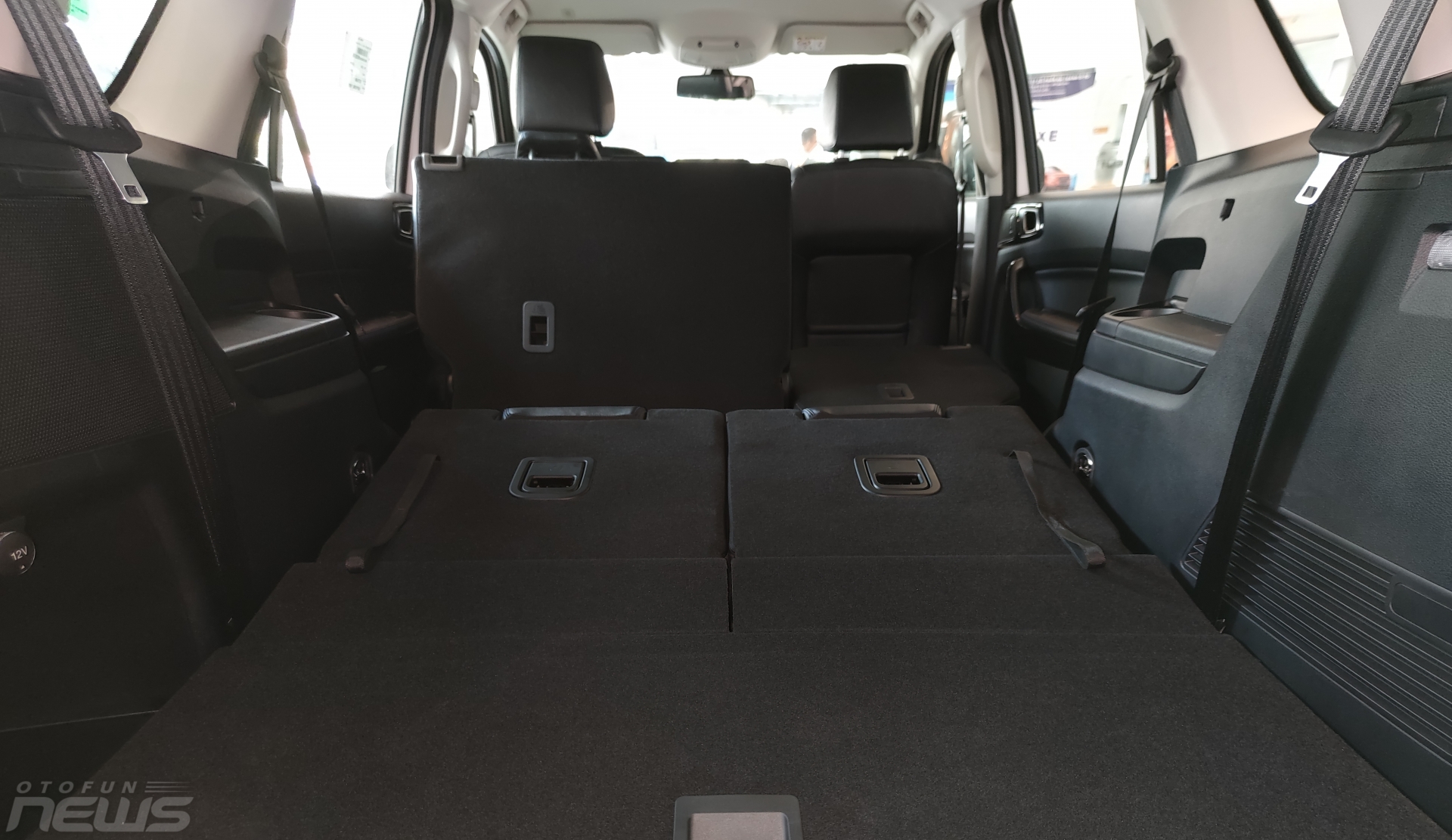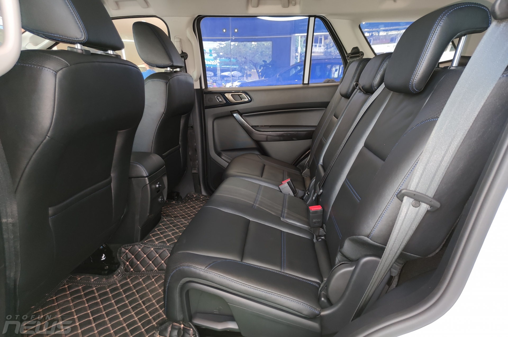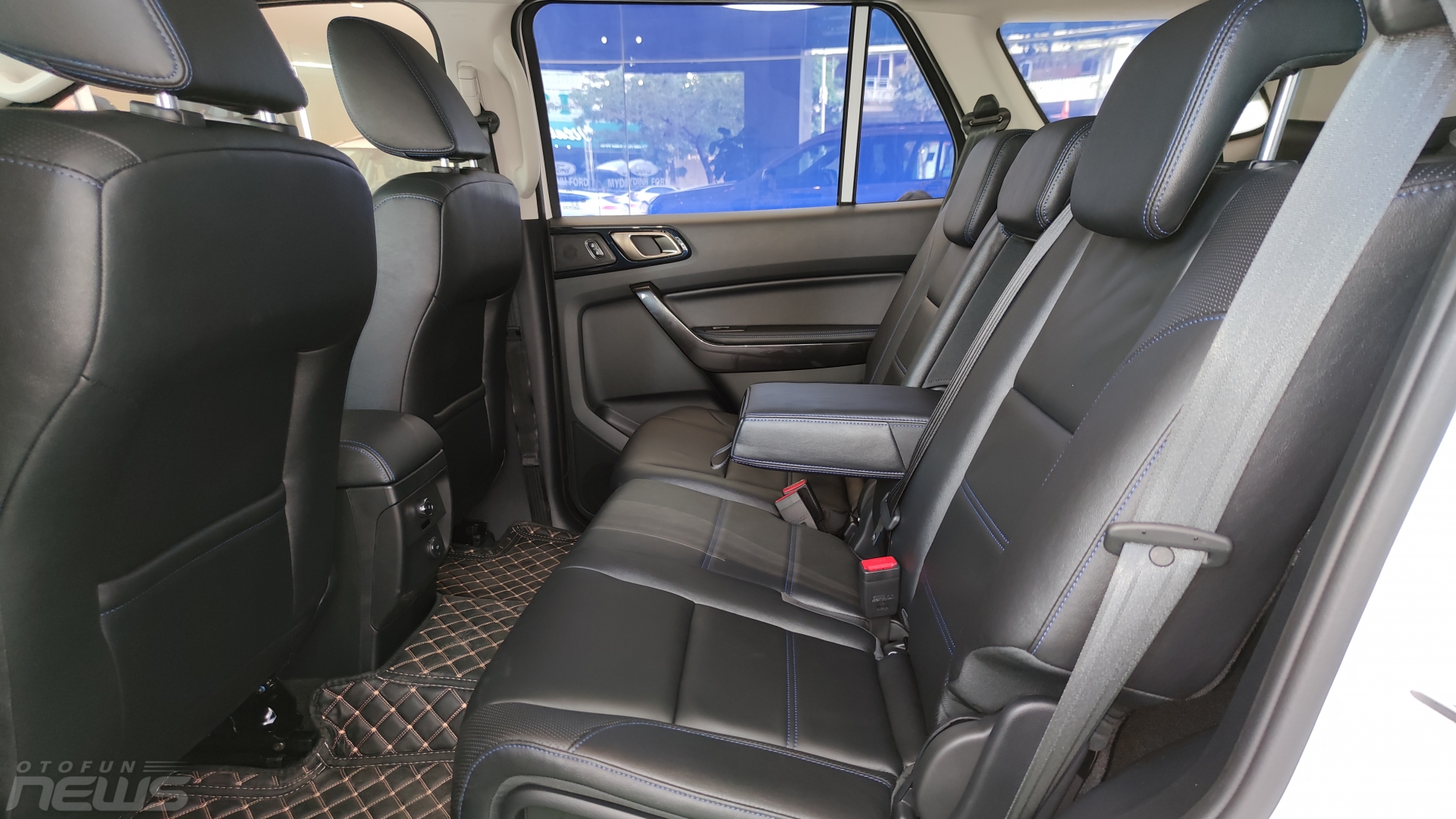 Với chiều dài trục cơ sở lớn, chiếc xe mang tới cho người dùng không gian ngồi và để chân thoải mái ở tất cả các vị trí. Dòng chữ Sport được in nổi trên tựa lưng hàng ghế trước, ghế lái có thể chỉnh điện 6 hướng, trong khi ghế phụ chỉ là chỉnh cơ. Hàng ghế thứ hai trên Ford Everest Sport 2021 có ba vị trí tựa đầu, bệ tỳ tay trung tâm, trượt/ngả một chạm giúp hành khách dễ dàng ra vào hàng ghế cuối. Khoang hành lý có dung tích 450L, nhưng khi gập cả hai hàng ghế sau thì tổng dung tích chứa đồ lên tới 2.010L thoải mái cho một gia đình với đồ dùng đi du lịch cuối tuần.