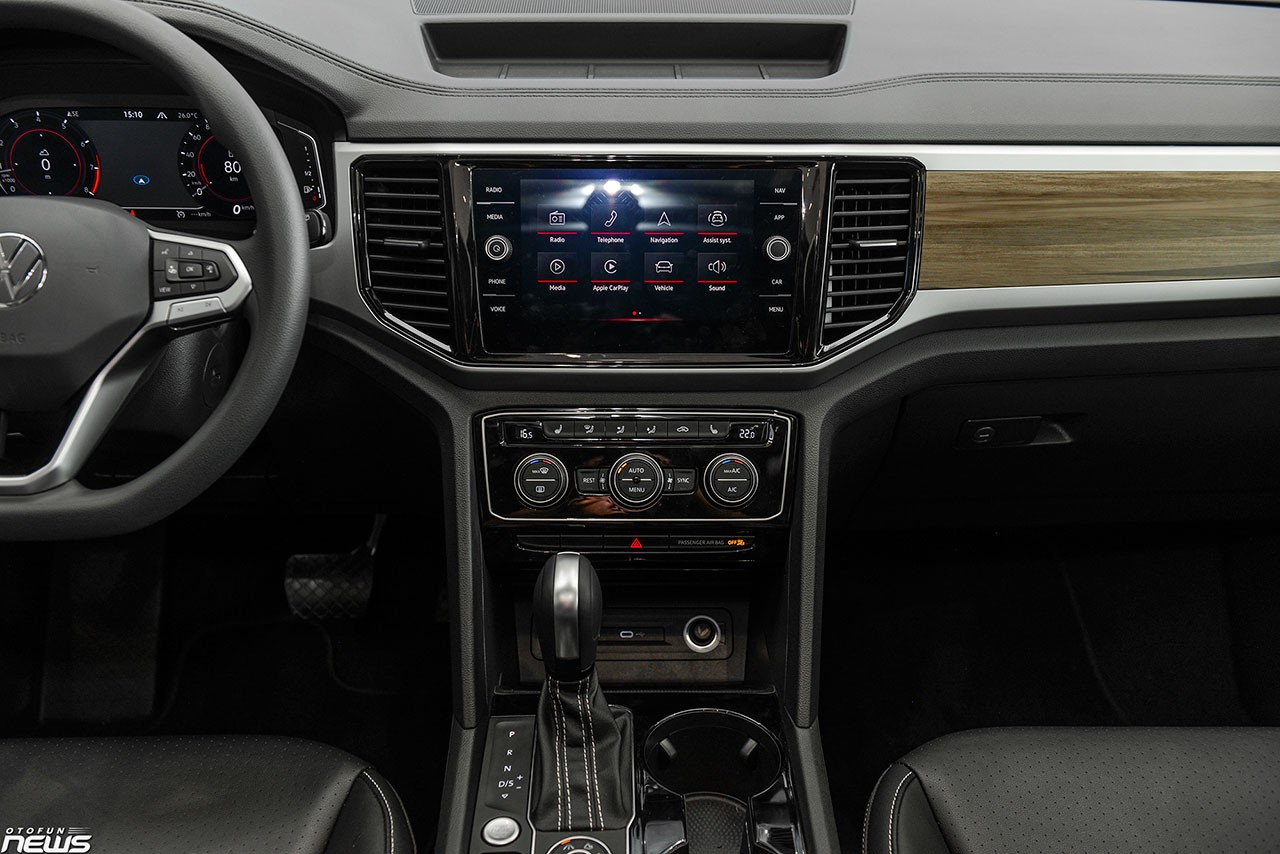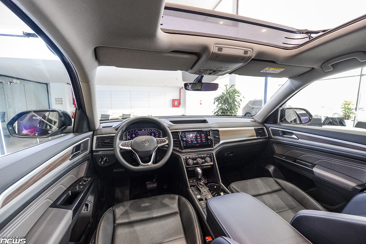 Vào bên trong, Volkswagen Teramont có thiết kế đơn giản, thực dụng nhưng không kém phần tiện nghi. Nội thất là sự kết hợp của vật liệu da, gỗ và kim loại. Hàng ghế trước chỉnh điện, ghế lái tích hợp nhớ ba vị trí. Vô-lăng ba chấu với logo thiết kế mới ở chính giữa, tích hợp nhiều phím chức năng. Đồng hồ hiển thị điện tử Digital Cockpit Pro với màn hình độ phân giải cao.