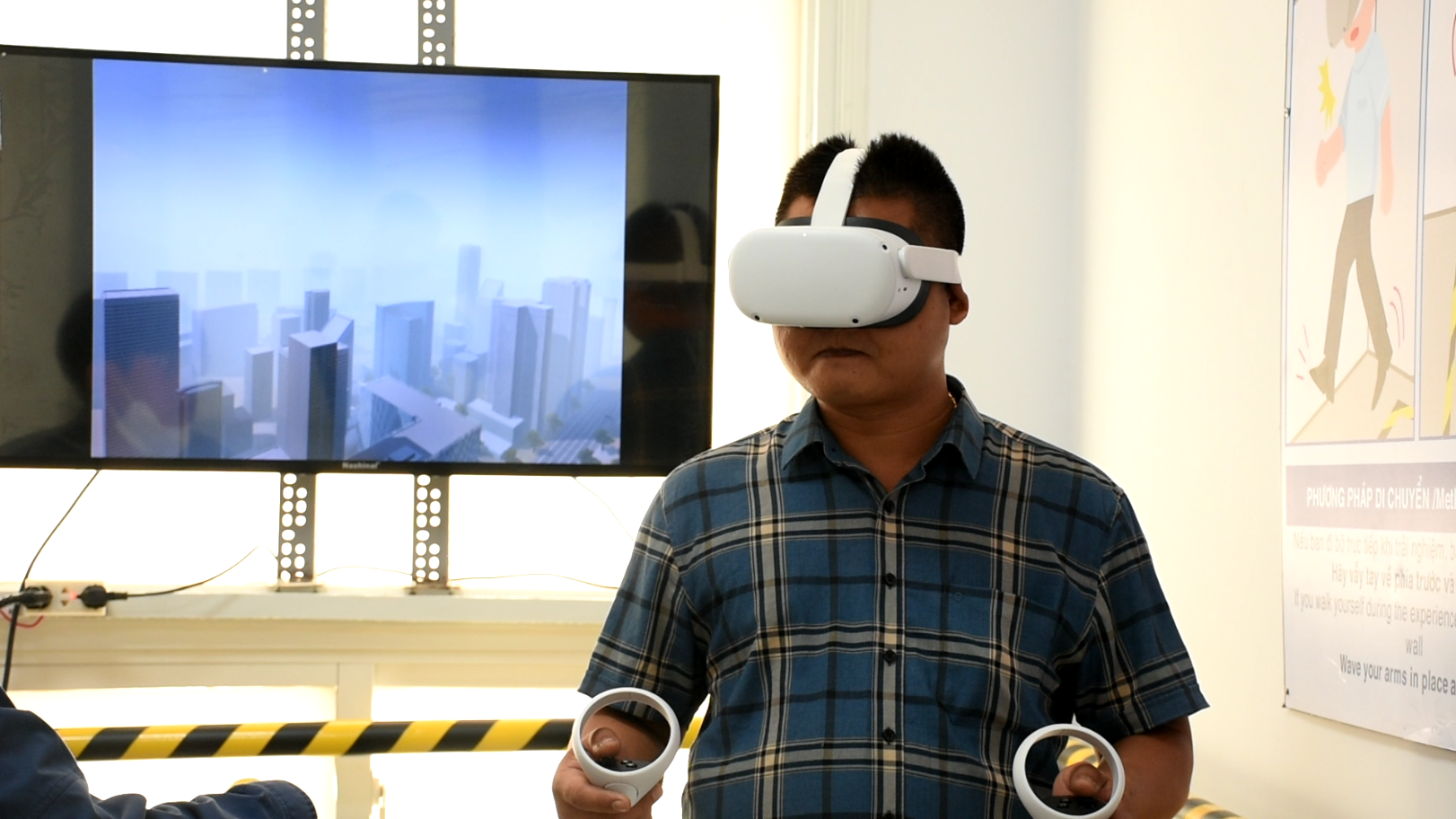Trải nghiệm AR tại Phòng Đào tạo, giám sát an toàn thông minh Trung tâm An toàn lao động thuộc Viện Khoa học ATVSLĐ. Ảnh: Văn Quân. |