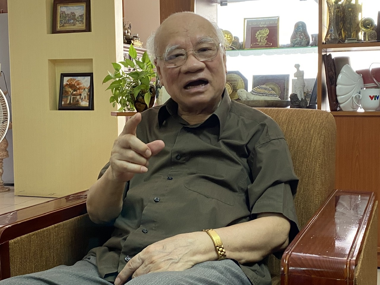 | PGS.TS Nguyễn An Lương trao đổi với PV Tạp chí Lao động và Công đoàn. Ảnh: Ngô Khiêm. |