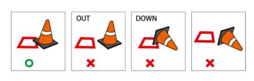 - Trường hợp kẹt chóp (cone) vào gầm xe được tính là đổ chóp. Các tác động bằng tay, lùi tiến để gỡ chóp cũng được coi là đổ chóp và bị tính phạt cộng thời gian.