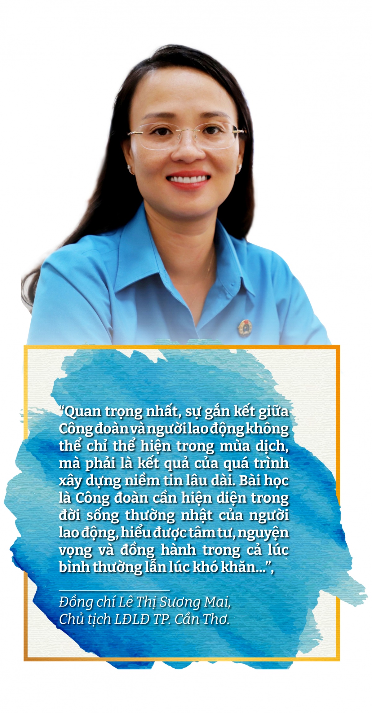 Đồng chí Lê Thị Sương Mai, Chủ tịch LĐLĐ TP. Cần Thơ, cho biết: Dịch bệnh là thời điểm người lao động bị tác động nặng nề nhất: mất việc, giảm thu nhập, lo lắng về sức khỏe và tương lai. Trong bối cảnh đó, sự đồng hành kịp thời của Công đoàn, từ hỗ trợ nhu yếu phẩm, tài chính, tổ chức “Siêu thị 0 đồng”, “ATM gạo”, “Túi an sinh công đoàn”… đã thể hiện vai trò là “người bạn đồng hành” thực sự. Bài học rút ra là: muốn gắn bó lâu dài, Công đoàn phải trở thành chỗ dựa thực chất, có mặt đúng lúc người lao động cần nhất. Bên cạnh đó, dịch bệnh diễn biến nhanh và khó lường, đặt ra yêu cầu Công đoàn phải chuyển đổi nhanh từ cách làm truyền thống sang phương thức linh hoạt, ứng dụng công nghệ. Việc sử dụng mạng xã hội, nền tảng trực tuyến để kết nối, tuyên truyền, tổ chức các hoạt động chăm lo là bài học về tính chủ động và thích ứng trong hoàn cảnh mới. Hơn nữa, Công đoàn không chỉ làm từ thiện hay chăm lo đời sống, mà còn phải đồng hành cùng người lao động trong bảo vệ việc làm, quyền lợi, tâm lý, sức khỏe. Việc triển khai các chương trình hỗ trợ tinh thần, tư vấn pháp lý, hỗ trợ y tế… cho thấy Công đoàn cần mở rộng vai trò và phương thức hoạt động để gắn bó lâu dài. “Quan trọng nhất, sự gắn kết giữa Công đoàn và người lao động không thể chỉ thể hiện trong mùa dịch, mà phải là kết quả của quá trình xây dựng niềm tin lâu dài. Bài học là Công đoàn cần hiện diện trong đời sống thường nhật của người lao động, hiểu được tâm tư, nguyện vọng và đồng hành trong cả lúc bình thường lẫn lúc khó khăn. Dịch bệnh là phép thử đối với bản lĩnh và năng lực của cán bộ Công đoàn. Bài học đặt ra là cần bồi dưỡng đội ngũ cán bộ đủ tâm – tầm – tài, có khả năng xử lý tình huống linh hoạt, gần gũi và thấu hiểu người lao động, từ đó tạo dựng mối quan hệ gắn bó bền vững”, đồng chí Lê Thị Sương Mai nhấn mạnh. Với công nhân, ký ức về “3 tại chỗ” có lẽ là một phần không thể xóa mờ trong hành trình mưu sinh. Nhưng đằng sau mùi thuốc sát khuẩn, sau chiếc chiếu trải nền gạch lạnh, là những hình ảnh không thể nào quên: Cán bộ công đoàn đưa bữa ăn lúc nửa đêm, cõng công nhân đi test khi sốt cao, hay lặng lẽ ngồi ghi danh sách hỗ trợ hàng trăm người từng ngày. Còn đối với mỗi cán bộ Công đoàn, chính những thách thức khắc nghiệt của dịch bệnh đã trở thành phép thử để tổ chức Công đoàn nhìn lại mình, làm mới mình và trưởng thành hơn. Từ việc lắng nghe nhiều hơn, hành động kịp thời hơn, đến việc ứng dụng công nghệ trong chăm lo đời sống đoàn viên – tất cả đã góp phần định hình một hình ảnh Công đoàn gần gũi, thiết thực và đáng tin cậy hơn trong mắt người lao động. Đổi mới tư duy, chuyển từ “hành chính hóa” sang “nghĩ và làm vì người lao động” không chỉ là bài học, mà còn là kim chỉ nam cho hành trình phát triển Công đoàn trong giai đoạn mới. Và cũng chính từ đây, niềm tin – tài sản lớn nhất của tổ chức – đã được gieo lại, nảy nở trong từng phân xưởng, từng mái nhà công nhân.
