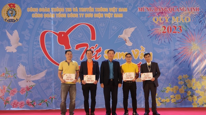 Đồng chí Chu Văn Bình - Chủ tịch Công đoàn Thông tin và Truyền thông Việt Nam trao giải thưởng cho đội Nhất - Nhì - Ba cuộc thi kéo co. Do tình hình chung của thế giới sẽ còn nhiều biến động, nhiều doanh nghiệp sẽ còn tiếp tục gặp khó khăn, cuộc sống và gia đình của NLĐ có thể bị ảnh hưởng trong thời gian tới. Tổng LĐLĐ Việt Nam mong muốn, các cấp Công đoàn của ngành TT&TT tiếp tục phát huy có hiệu quả chương trình "Tết sum vầy", huy động tốt hơn nữa sự tham gia của xã hội trên tinh thần xã hội hóa, tập trung chăm lo Tết cho ĐV, NLĐ, đảm bảo cho mọi CNLĐ đều có Tết; thực hiện tốt nội dung đối thoại, thương lượng; xây dựng quy chế dân chủ, giám sát việc thực hiện chính sách bảo hiểm xã hội, bảo hiểm y tế, bảo hiểm thất nghiệp, các chế độ an toàn vệ sinh lao động cho NLĐ, ưu tiên ĐV, NLĐ có hoàn cảnh khó khăn, bị tai nạn lao động, bệnh nghề nghiệp, NLĐ thiếu việc làm, bị mất việc làm, các đối tượng chính sách khác... để mọi CNLĐ đều có được ngày Tết trọn vẹn. |
