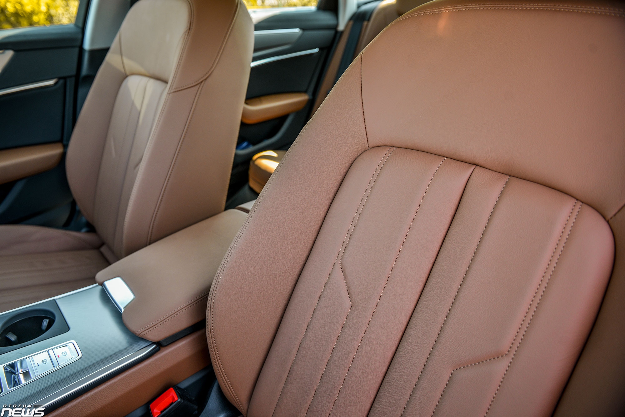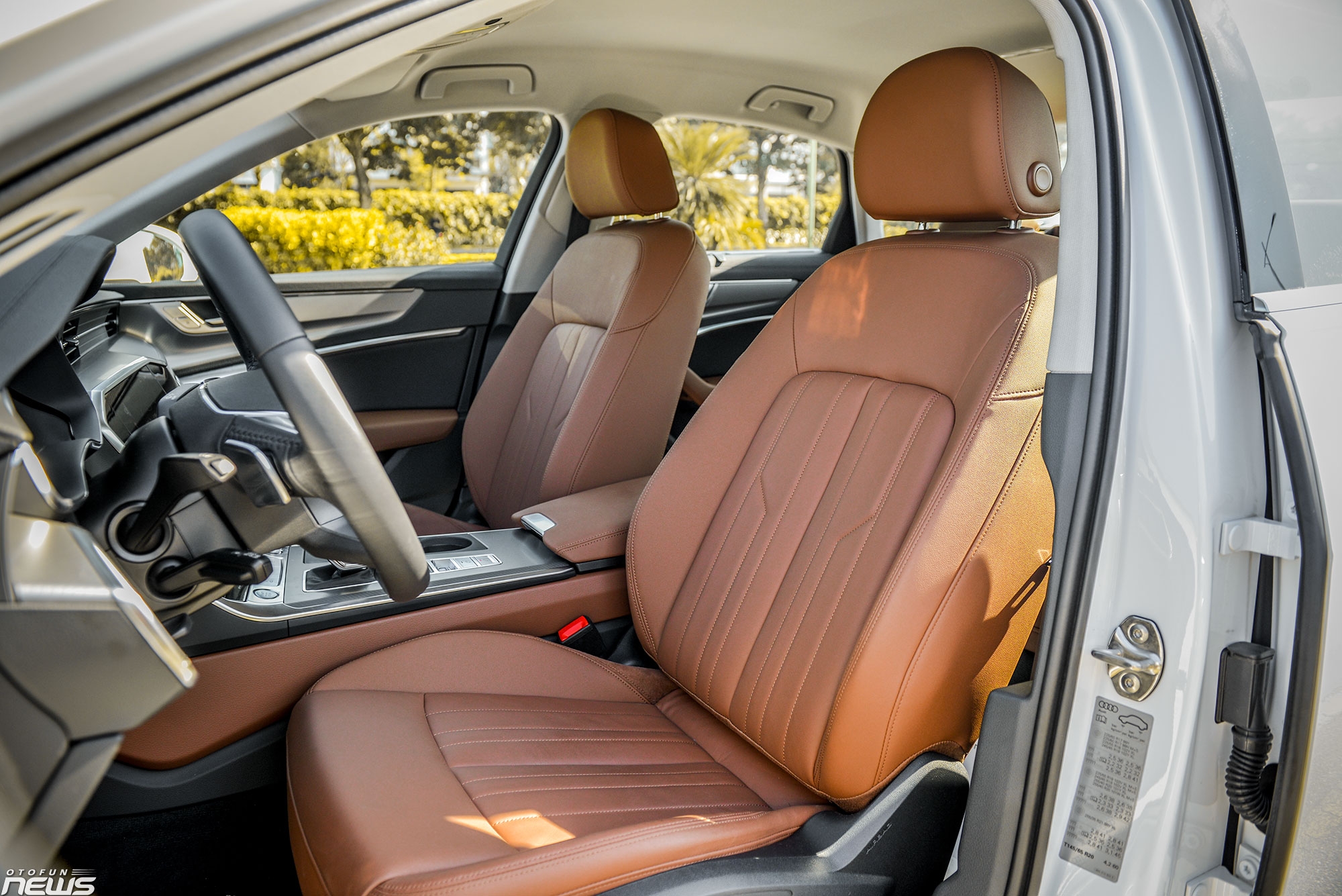 Vào bên trong, Audi A6 có thừa sự sang trọng dành cho những người cần một chiếc xe cao cấp đến từ Đức. Khoang xe sử dụng vật liệu cao cấp, bao gồm cả da thật, da nhân tạo và nhôm xước. Ghế trước bọc da, chỉnh điện kèm nhớ vị trí, hỗ trợ bơm lưng bốn chiều và tự đầu.