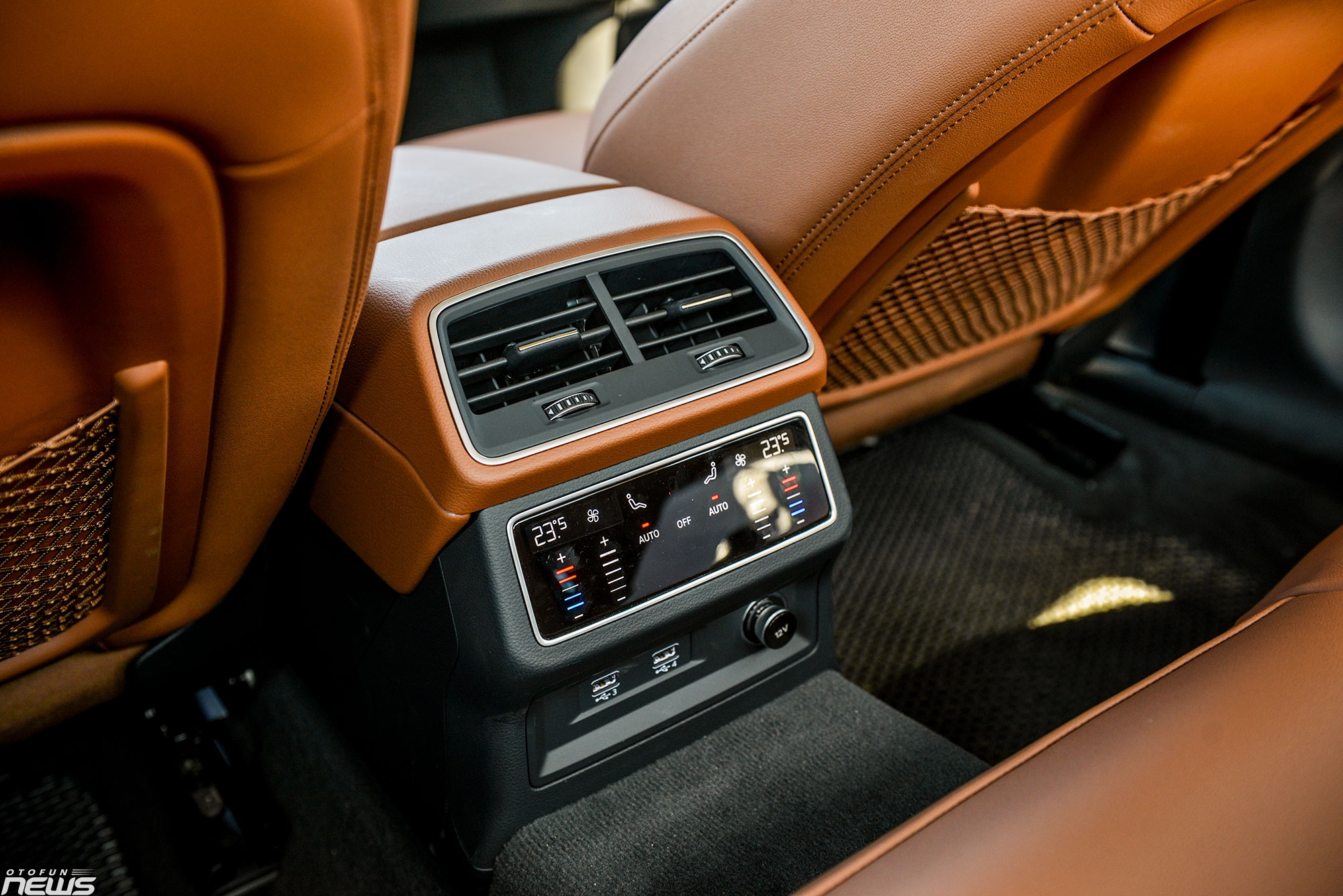 Hàng ghế sau bọc da, có thể gập theo tỷ lệ 40/20/40. Ở vị trí này, Audi trang bị thêm hai rèm che nắng hai bên chỉnh tay cũng như rèm kính sau điều khiển điện, tăng sự riêng tư cho người ngồi. Hệ thống điều hòa độc lập bốn vùng tự động, có tính năng lọc bụi mịn, trang bị thêm bảng điều khiển riêng dành cho hàng ghế thứ hai.
