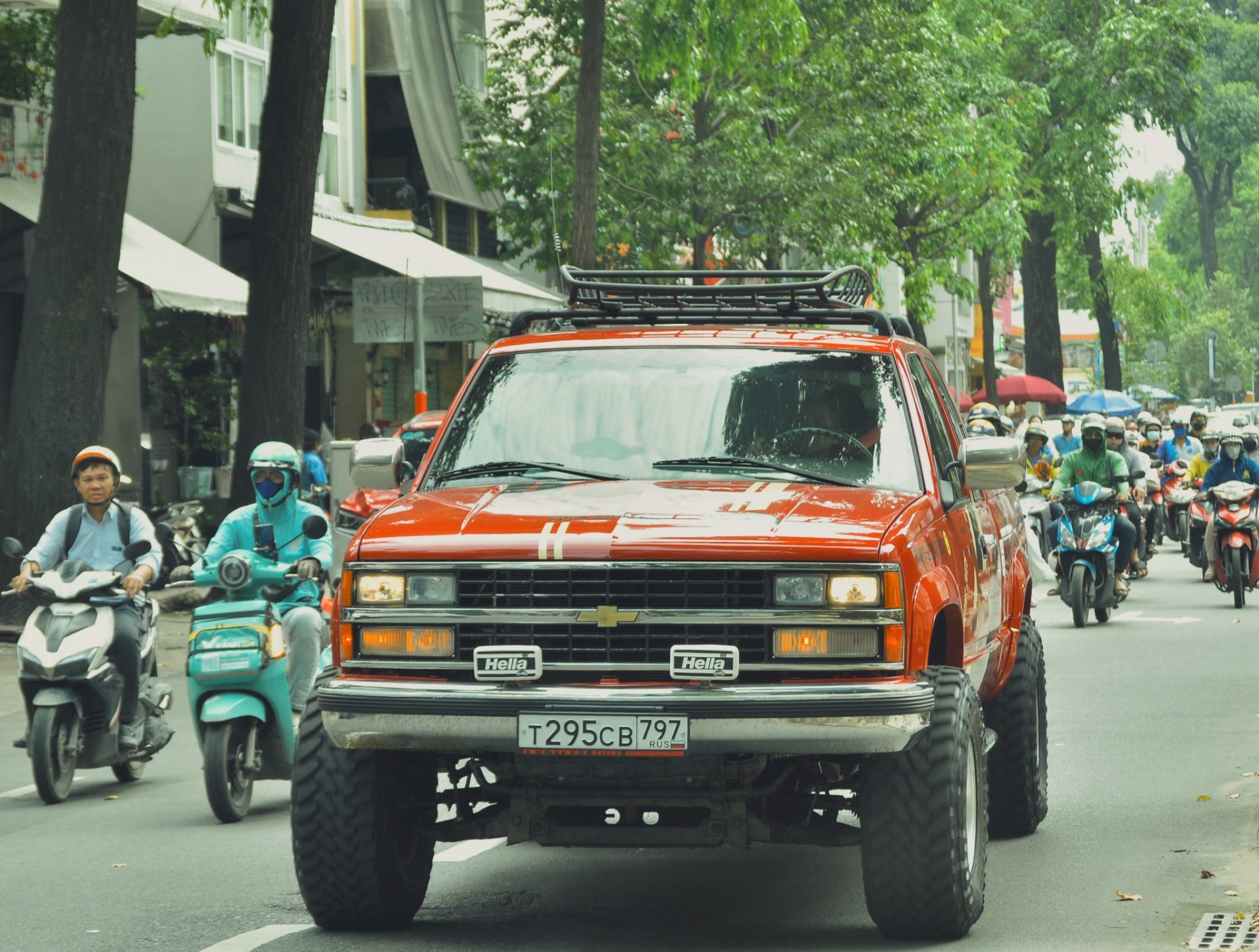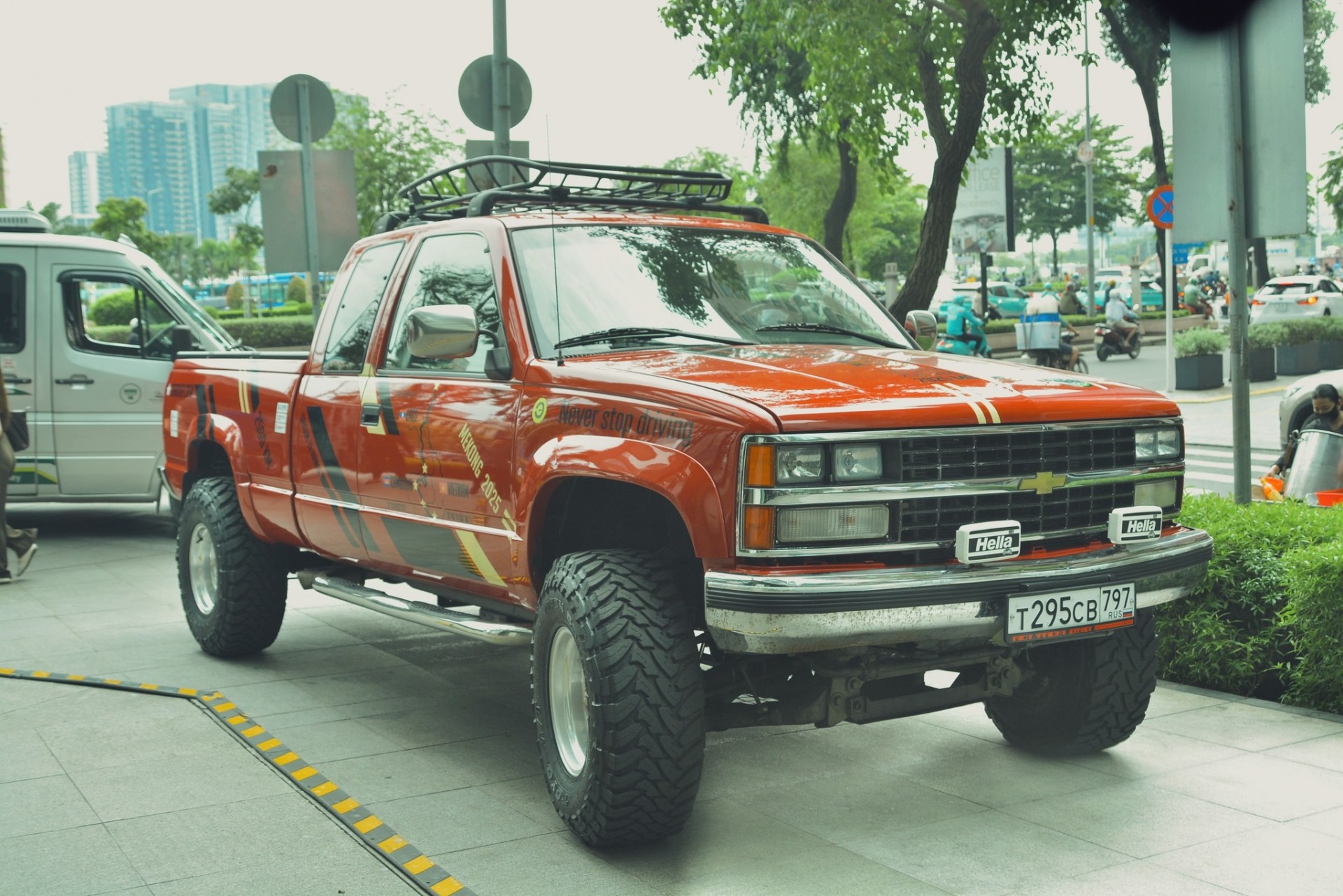 Một vài chiếc Chevrolet C/K thế hệ thứ tư và Toyota Land Cruiser cổ cũng góp mặt, thể hiện sức hấp dẫn của các dòng xe địa hình cũ nhưng bền bỉ, phù hợp cho hành trình dài xuyên biên giới.