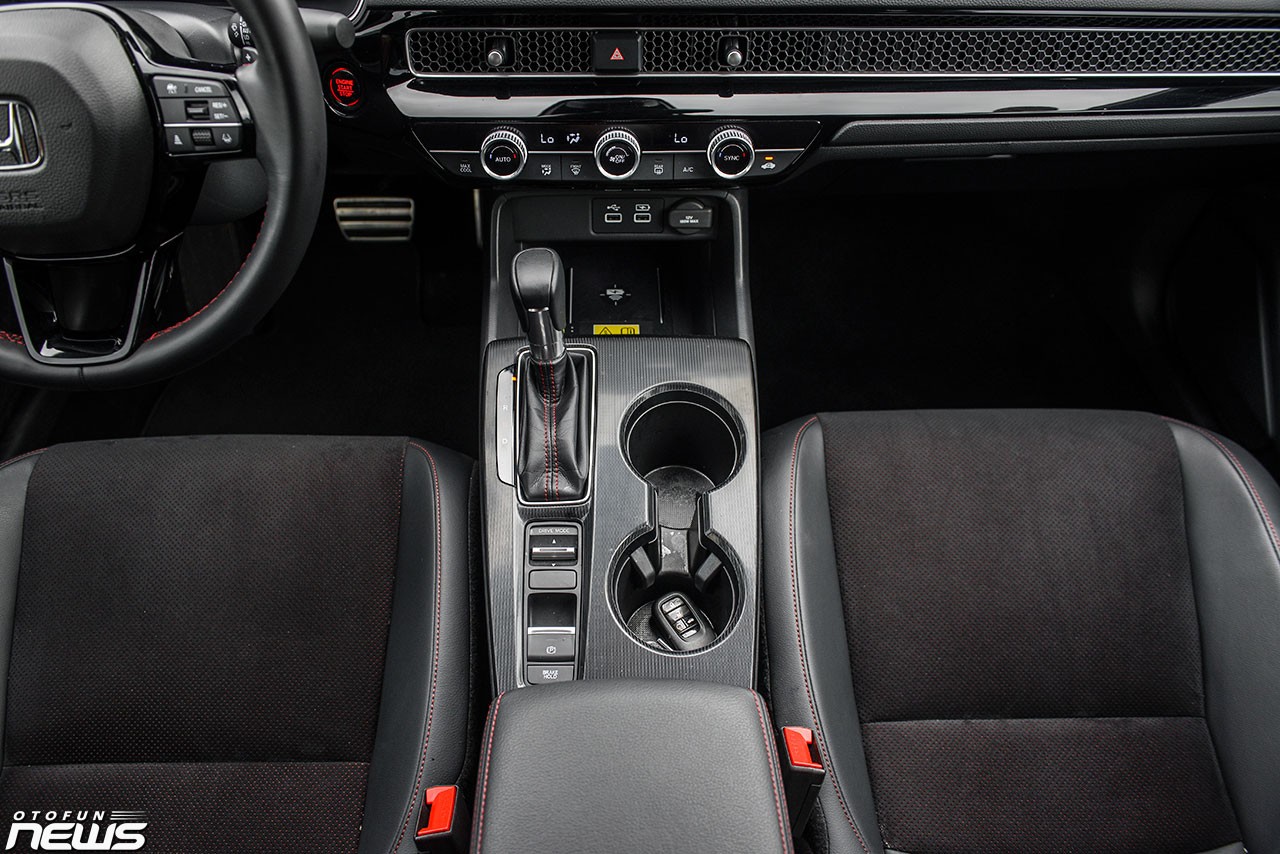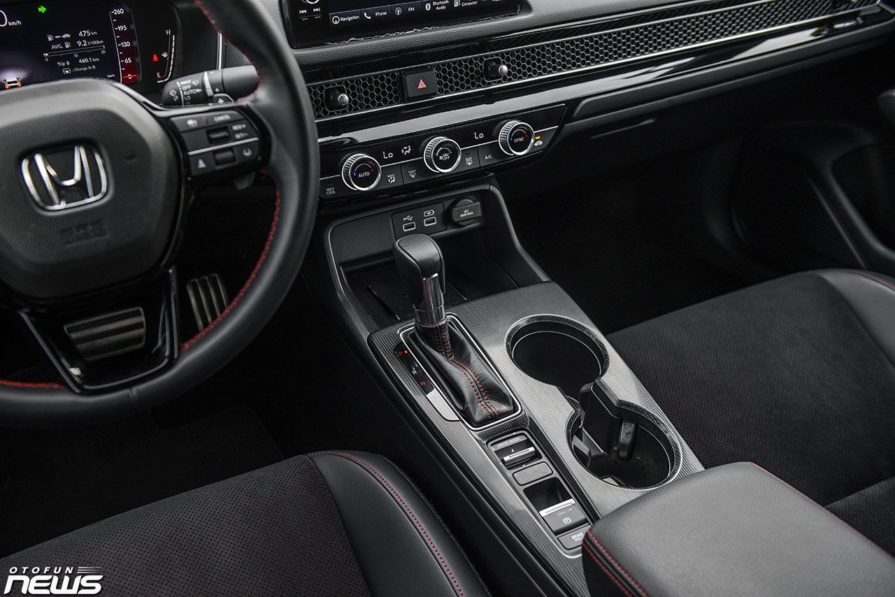Trong khi đó, phần táp lô trước với điểm nhấn là lưới tổ ong bằng kim loại, kéo dài toàn bộ bề ngang bảng táp lô. Các cửa gió điều hòa nhờ đó được ẩn đi một cách tinh tế. Màn hình giải trí cảm ứng 9 inch, lớn nhất trong dải sản phẩm của hãng, được đặt cao lên, dễ dàng quan sát. Màn hình này có thể kết nối với smartphone thông qua bluetooth, đi kèm với đó là sạc điện thoại không dây chuẩn Qi. Một trong những điểm nhấn không thể thiếu của Civic chính là hệ thống giải trí của xe cũng được kết nối với dàn âm thanh 12 loa đến từ Bose với công nghệ xử lý tín hiệu kỹ thuật số Bose Centerpoint 2 và Bose SurroundStage thiết kế riêng.