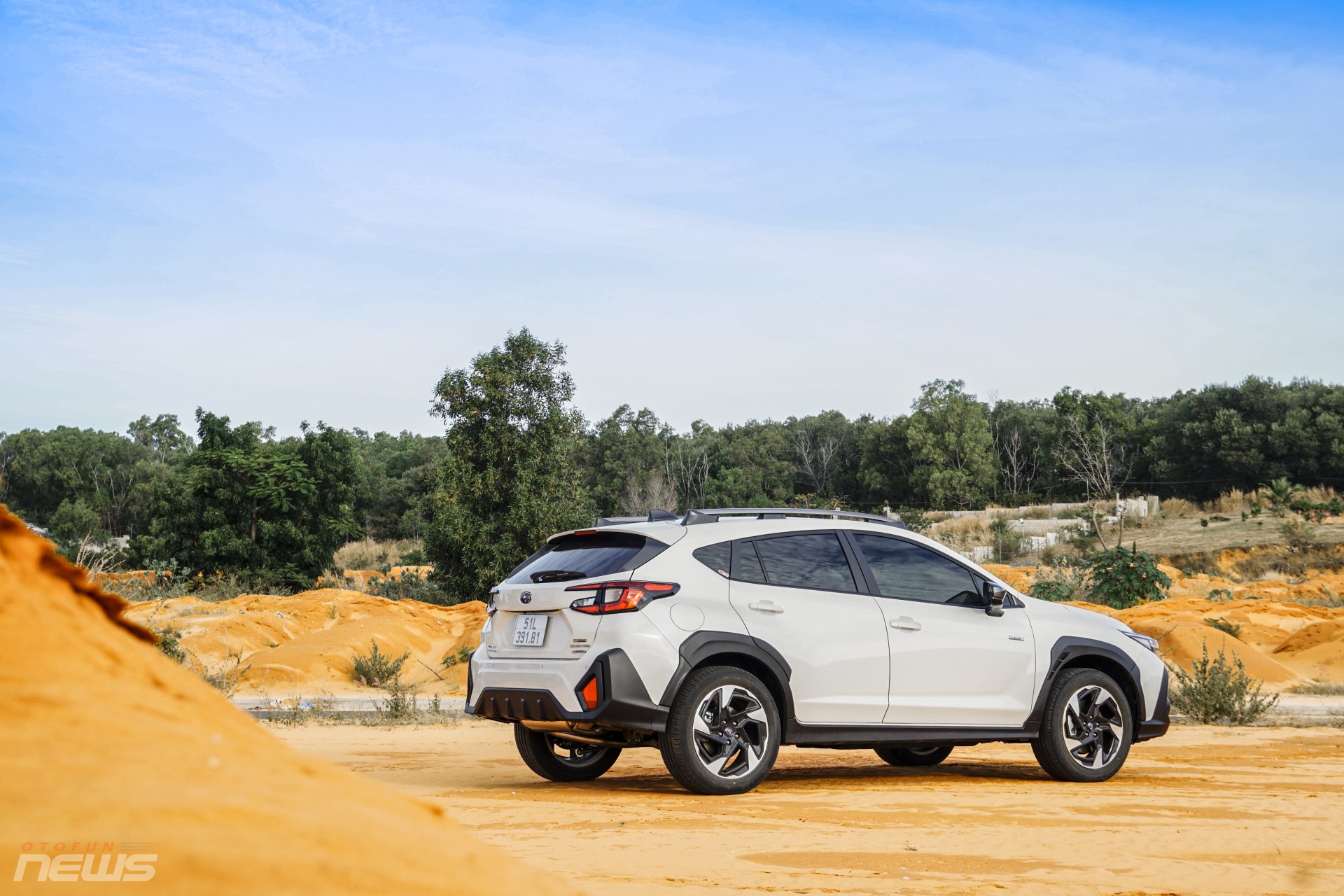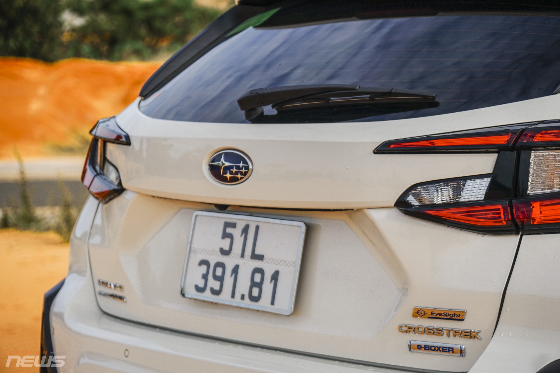 Những chi tiết như ốp nhựa vòm bánh xe, bệ cửa xe được làm dày dặn và chắc chắn, cho thấy Crosstrek không chỉ phù hợp với đường phố mà còn sẵn sàng đối đầu với các địa hình gồ ghề. Phần đuôi xe, với cụm đèn hậu 3D hiện đại, hoàn thiện tổng thể mang tính thực dụng nhưng không kém phần thu hút.