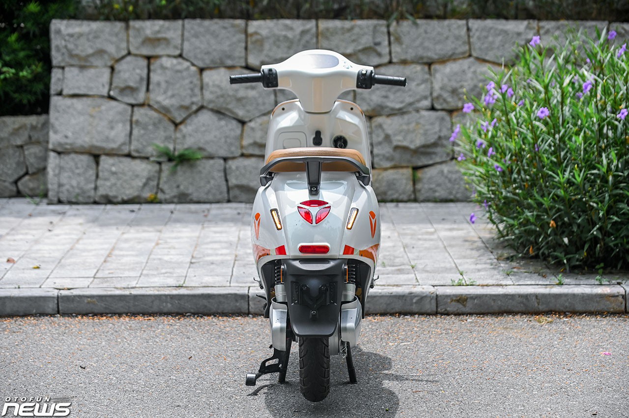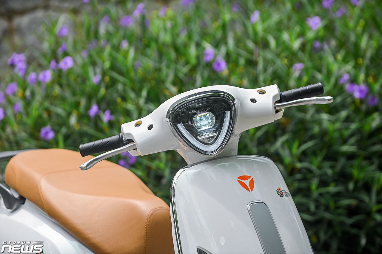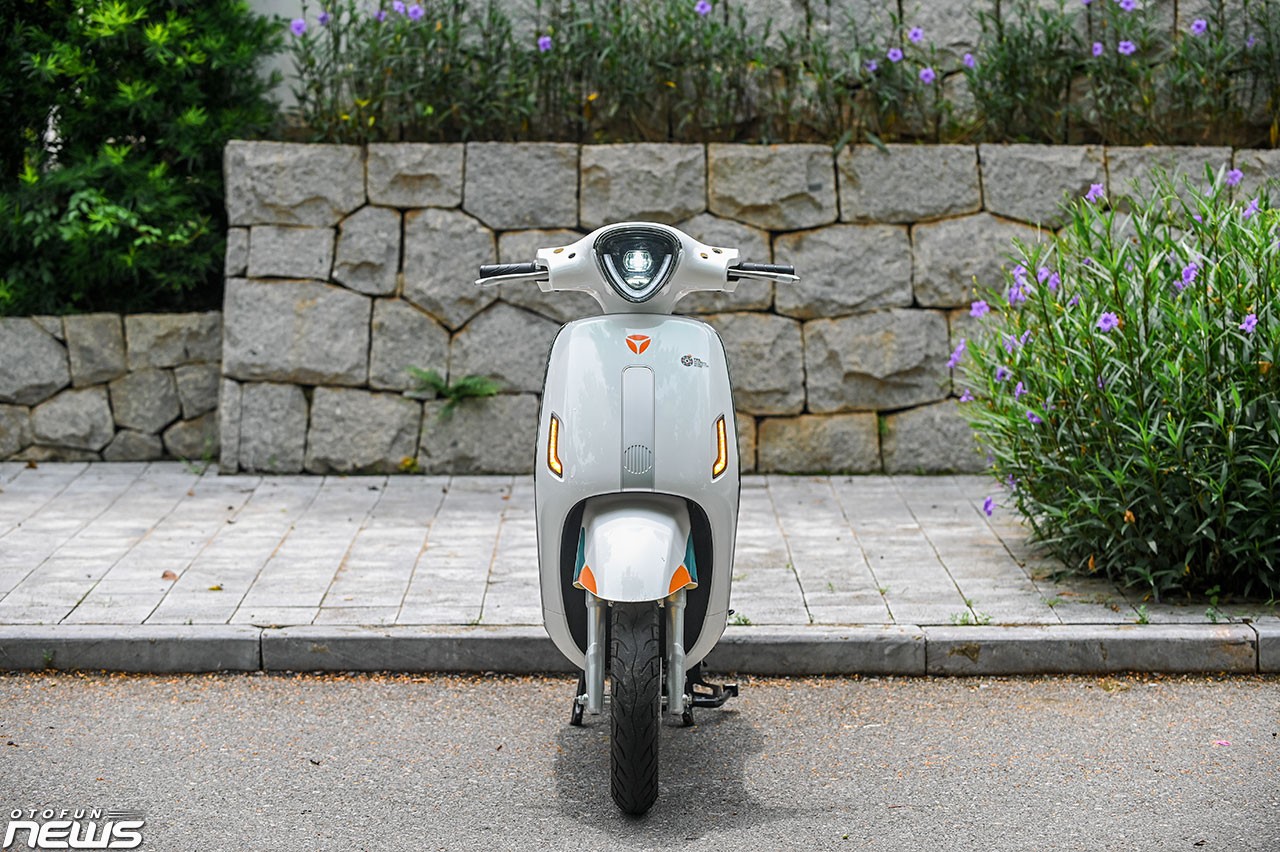 Diện mạo xe nhìn từ phía trước có nét tương tự chiếc Vespa Sprint Sport 150. Tuy nhiên, Orla nhờ có đường nét thiết kế giản lược hơn.