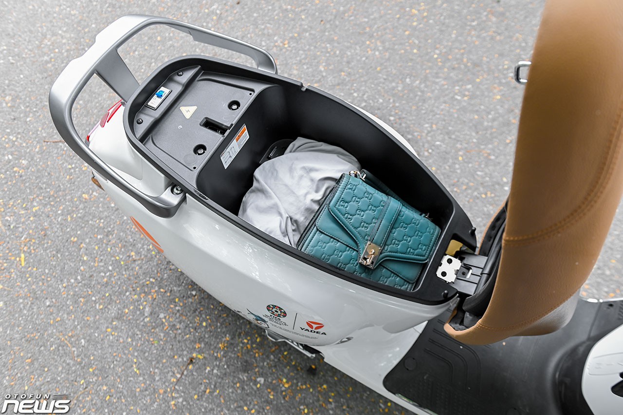 Yadea Orla 2023 tối ưu không gian chứa đồ cho người dùng, với ba vị trí để đồ được thiết kế khá rộng rãi. Cốp xe Yadea Orla 2023 có dung tích tương đối lớn, lên tới 17L, đủ chỗ cho cả bộ sạc lẫn một mũ bảo hiểm, thậm chí thêm một túi xách.