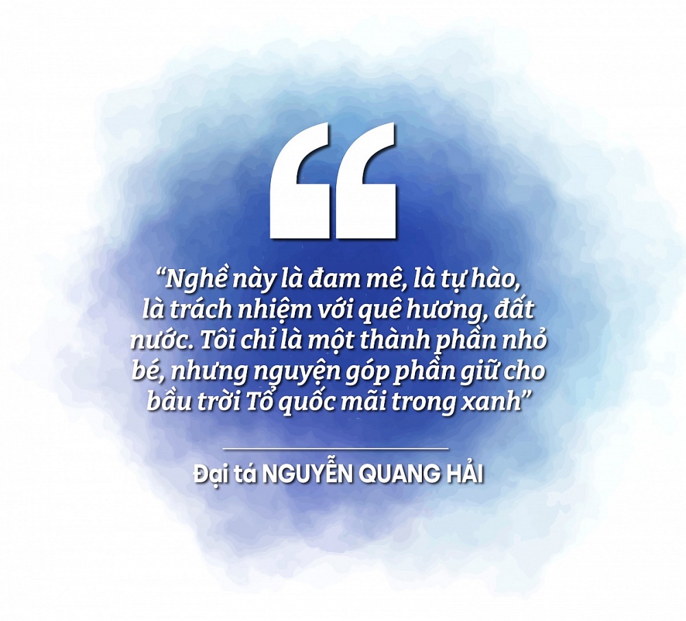 Là trung đoàn trưởng, anh thấu hiểu đồng đội, đặc biệt trong cuộc sống hiện nay khi bị chi phối bởi nhiều yếu tố bên ngoài. “Có bao giờ anh nghĩ đến chuyện đổi nghề?” – nghe tôi hỏi, anh lắc đầu dứt khoát: “Không bao giờ! Nếu được chọn lại, tôi vẫn chọn phi công, vẫn làm phi công, vẫn yêu nghề phi công”. Nghề phi công quân sự, đặc biệt phi công chiến đấu, anh là niềm vinh dự, tự hào của gia đình, họ hàng, quê hương anh. Với con trai, anh không ép: “Nếu con cũng yêu nghề này thì mình sẽ ủng hộ. Mình chỉ tâm sự, chia sẻ để con hiểu hơn về công việc của bố”. Nhận xét về thế hệ trẻ, anh nói: “Các em phi công bây giờ xác định động cơ, thái độ tốt nên học nghề nhanh. Xã hội cũng quan tâm nhiều hơn, rồi truyền thông đưa tin nhiều nên các em có động lực hơn. Tôi mừng lắm”. Cuộc trò chuyện khép lại dưới bóng hoàng hôn trên sân bay Kép, lúc này chỉ còn lại một vệt cam cuối cùng trên đường băng. Chia tay nhau, anh bắt tay tôi thật chặt, bàn tay chai sần vì cần lái nhưng ấm nóng lạ lùng. “Nghề này là đam mê, là tự hào, là trách nhiệm với quê hương, đất nước. Tôi chỉ là một thành phần nhỏ bé, nhưng nguyện góp phần giữ cho bầu trời Tổ quốc mãi trong xanh”, anh nói giọng vang vọng.