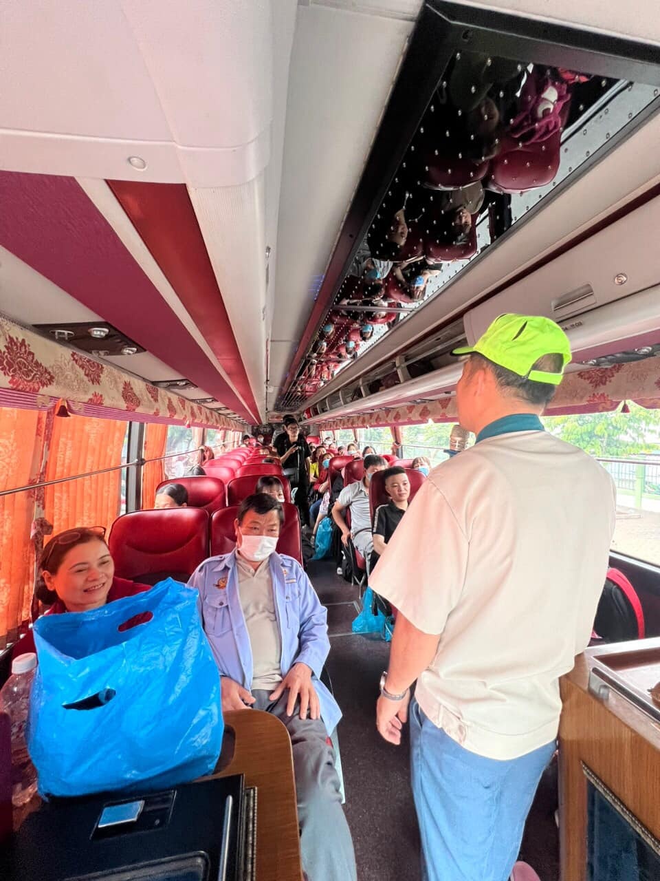 Đồng chí Đinh Sỹ Phúc chia sẻ, công đoàn đã xếp ghế ưu tiên, ghế đầu và cạnh nhau cho những CNLĐ mang theo con nhỏ, cũng như có sự quan tâm, chăm lo hơn từ các cán bộ công đoàn đi cùng.