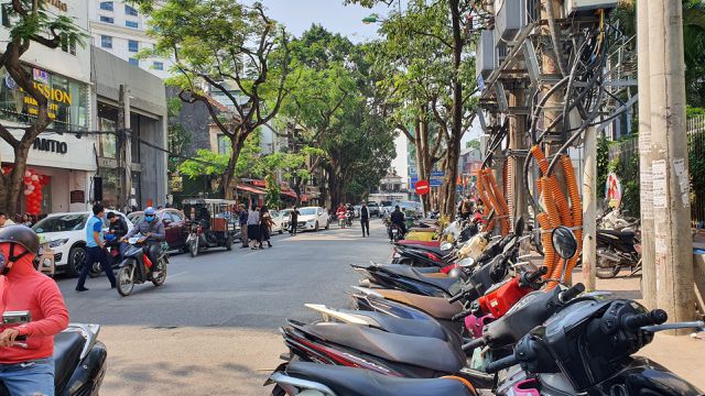 Không gửi được vào bãi của trung tâm thương mại, loay hoay một lúc, anh Ngọc Minh (Xã Đàn, Hà Nội) mới tìm được một chỗ gửi trên phố Thái Phiên. Thế nhưng, còn chưa kịp xuống xe, một thanh niên đã nhanh chân chạy ra đòi 20 nghìn đồng tiền gửi xe.