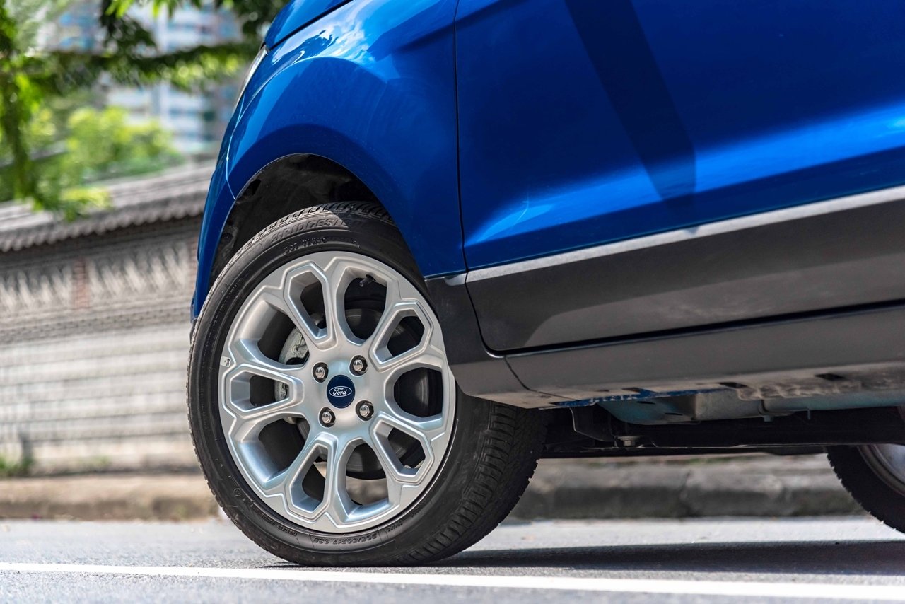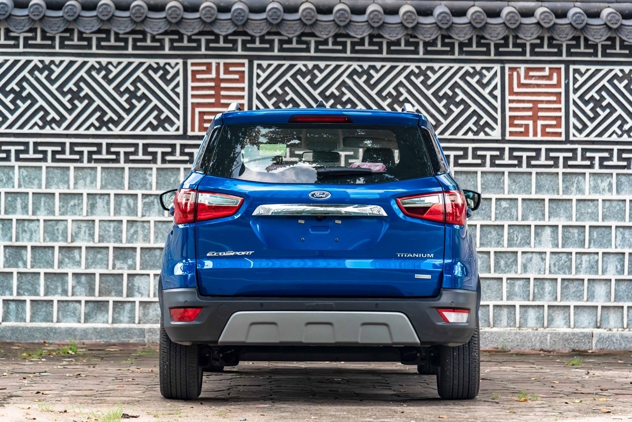 Ngoại thất của EcoSport mới được tinh chỉnh, bộc lộ những điểm mạnh của ngôn ngữ thiết kế SUV thời đại mới. Chụp ốp bánh xe dự phòng phía sau đã được gỡ bỏ trên phiên bản 2020, giúp kích thước xe nhỏ gọn hơn với chiều dài x rộng x cao lần lượt là 4.096 x 1.765 x 1.665 mm. Chi tiết này đã được thay thế bằng bộ dụng cụ hỗ trợ vá xe và bơm điện gọn nhẹ, dễ sử dụng và thân thiện hơn. Ngoài ra, phiên bản Titanium mới không còn trang bị cửa sổ trời.