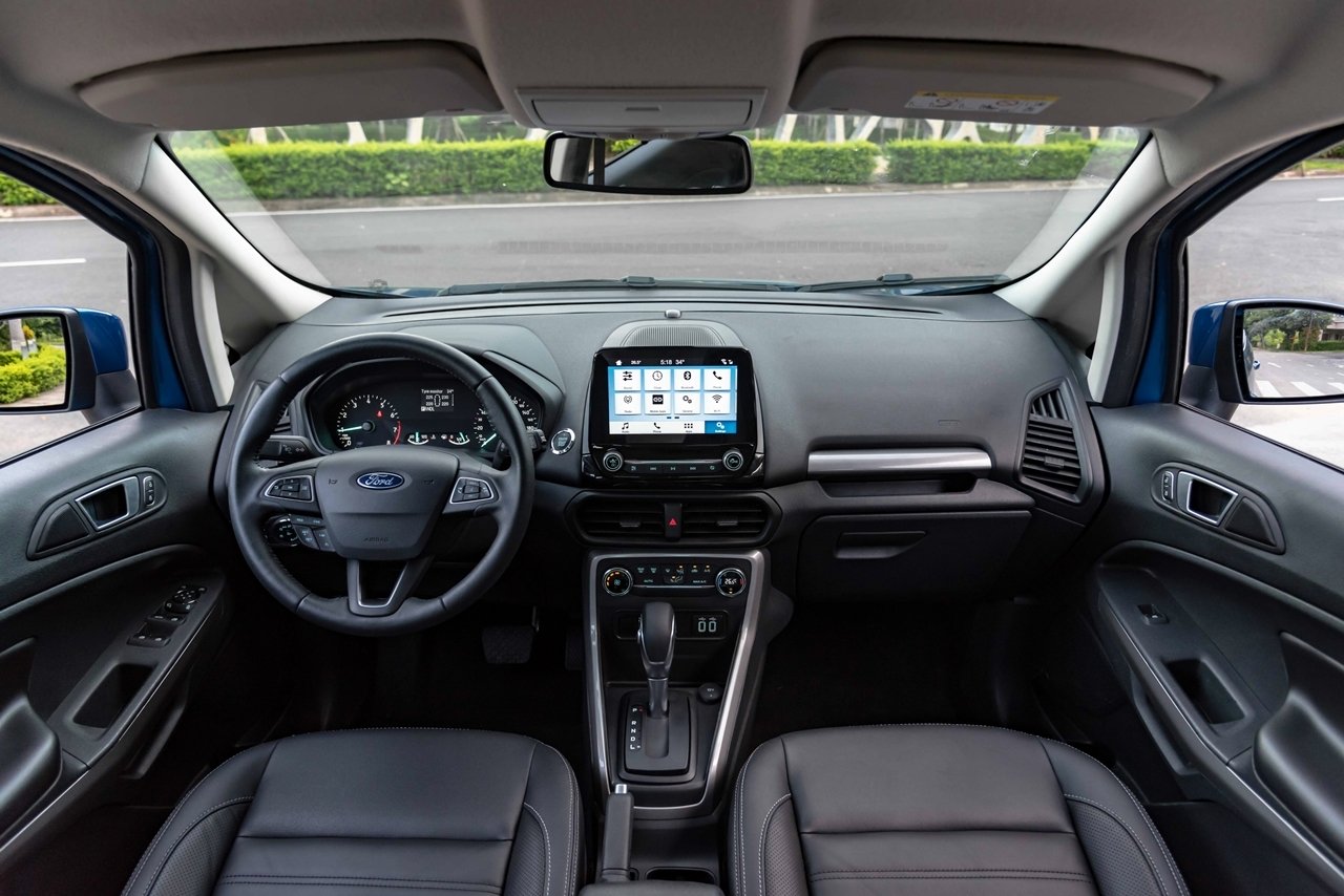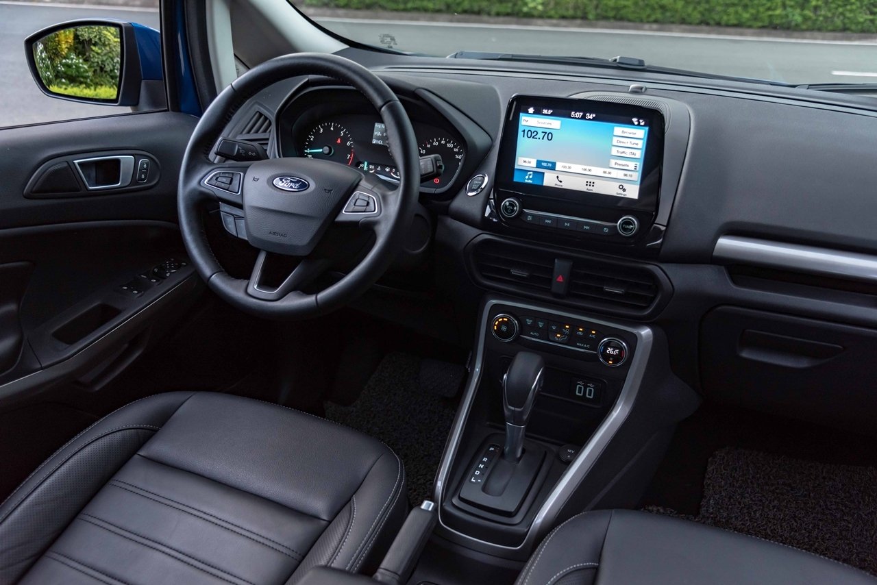 Sự tinh tế tiếp tục được thể hiện trên từng chi tiết nội thất của chiếc xe, với không gian rộng rãi, tiện nghi hơn cho người sử dụng. Nút bấm khởi động điện và khoá thông minh với chức năng cảm ứng đã được trang bị cho EcoSport mới. Chiếc xe sẽ tự động mở khoá chỉ qua một thao tác chạm vào tay nắm cửa. Hàng ghế sau với chế độ gập phẳng 60/40, mở ra khoang hành lý lên tới 1.414,5 lít, kết hợp với hơn 20 hộc chứa đồ thông minh và ngăn chứa đồ trung tâm trong khoang nội thất, phục vụ mọi mục đích từ công việc cho đến giải trí.