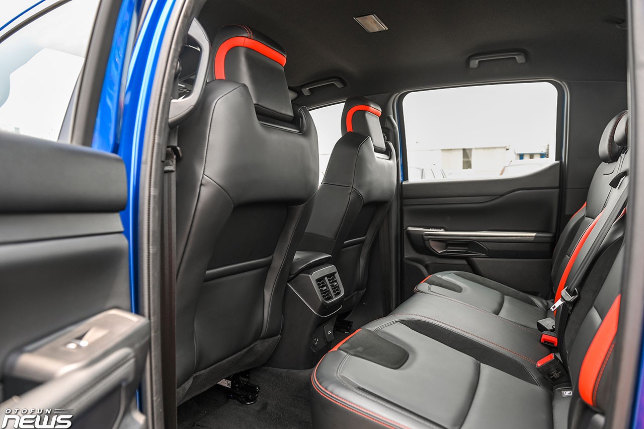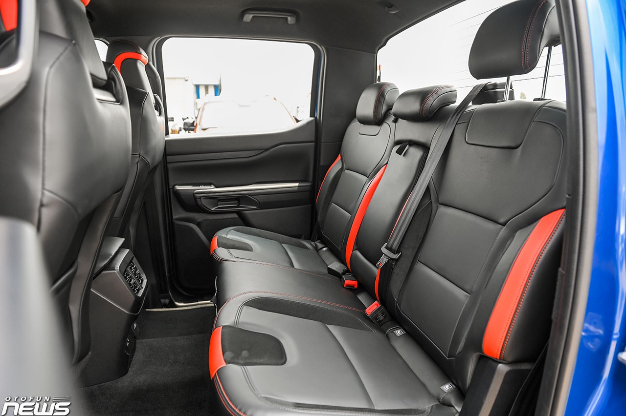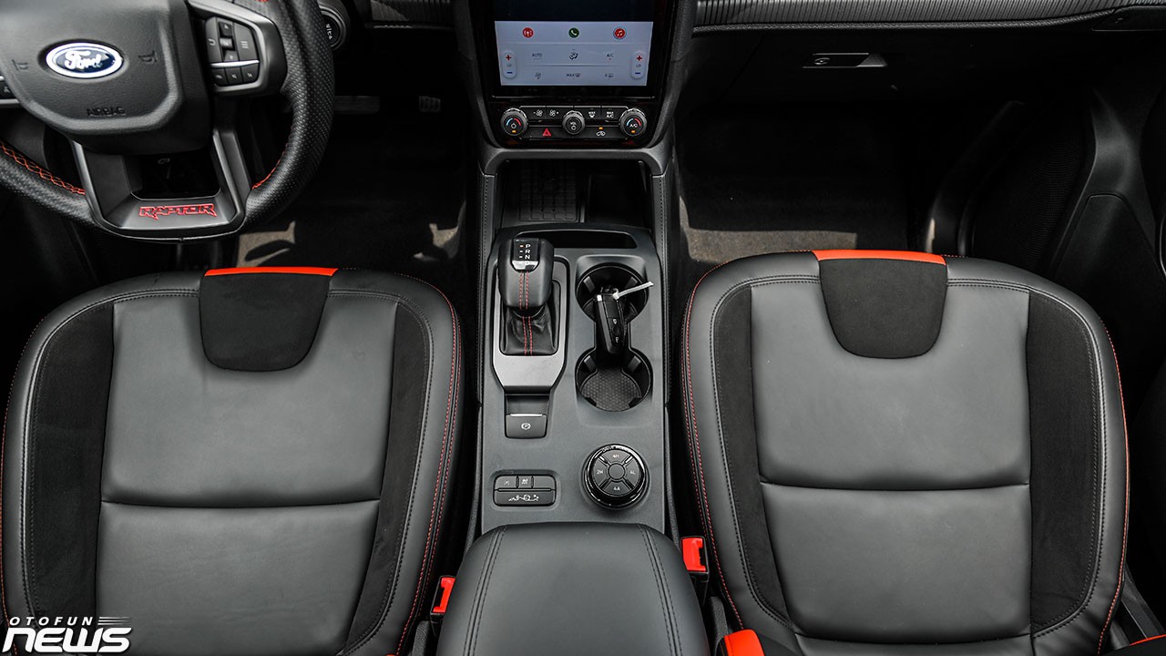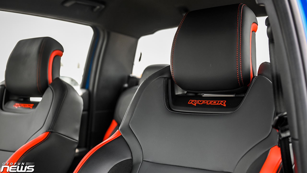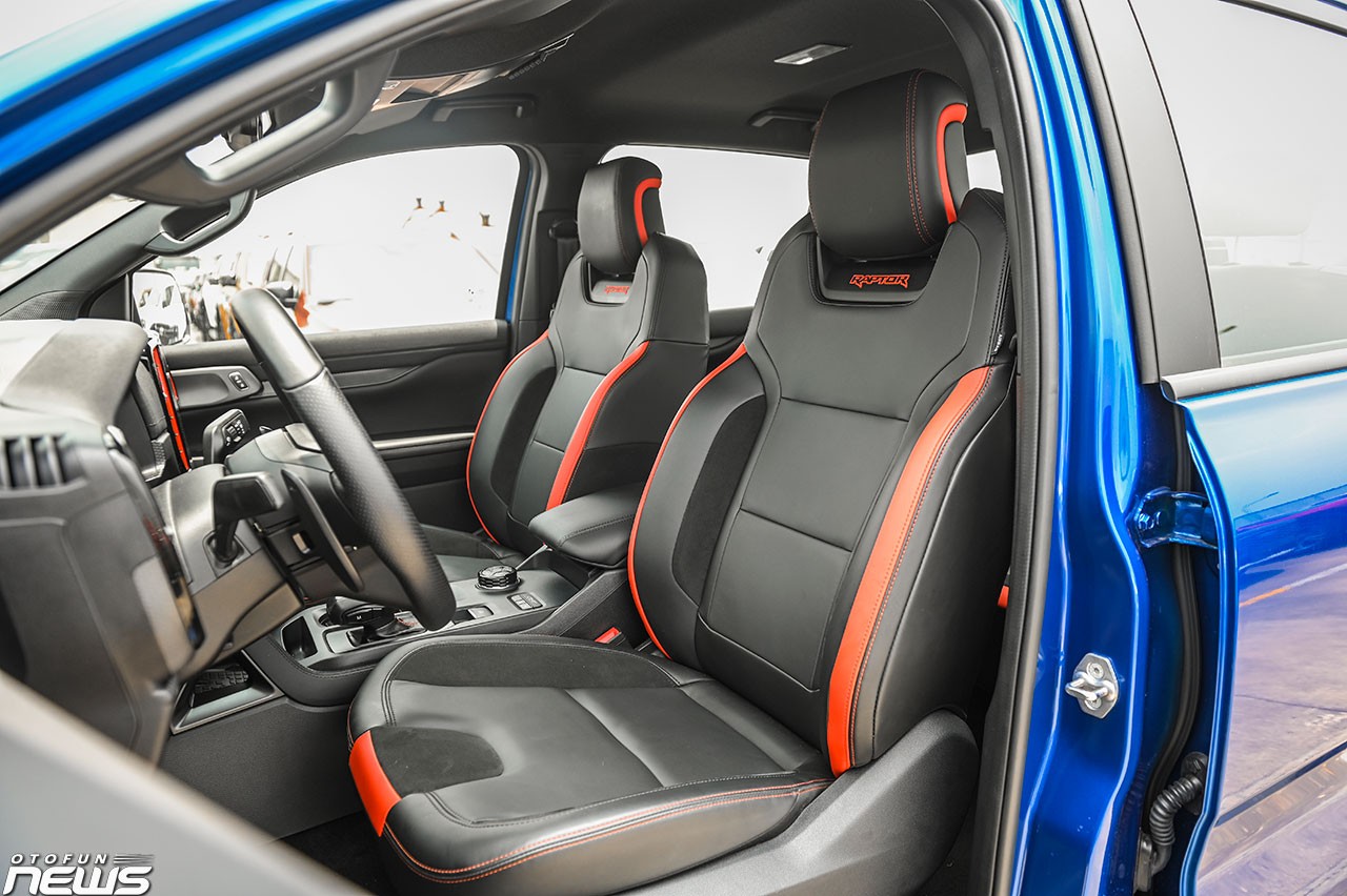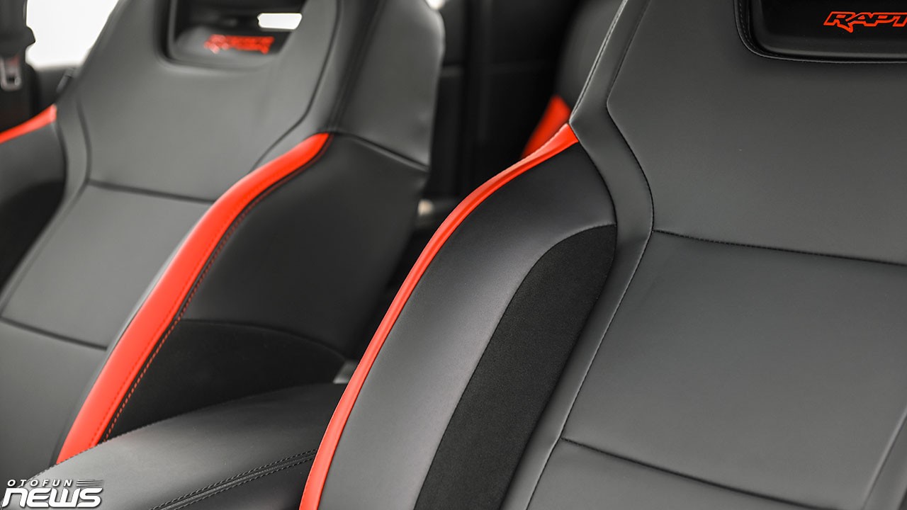 Ghế ngồi thiết kế ôm người, sử dụng vật liệu da kết hợp Alcantara, hàng ghế trước chỉnh điện. Phiên bản này có thêm các điểm nhấn màu cam ở nhiều vị trí như viền cửa gió điều hòa, các họa tiết phối màu của ghế, logo Raptor ở vô-lăng hay hàng ghế trước.