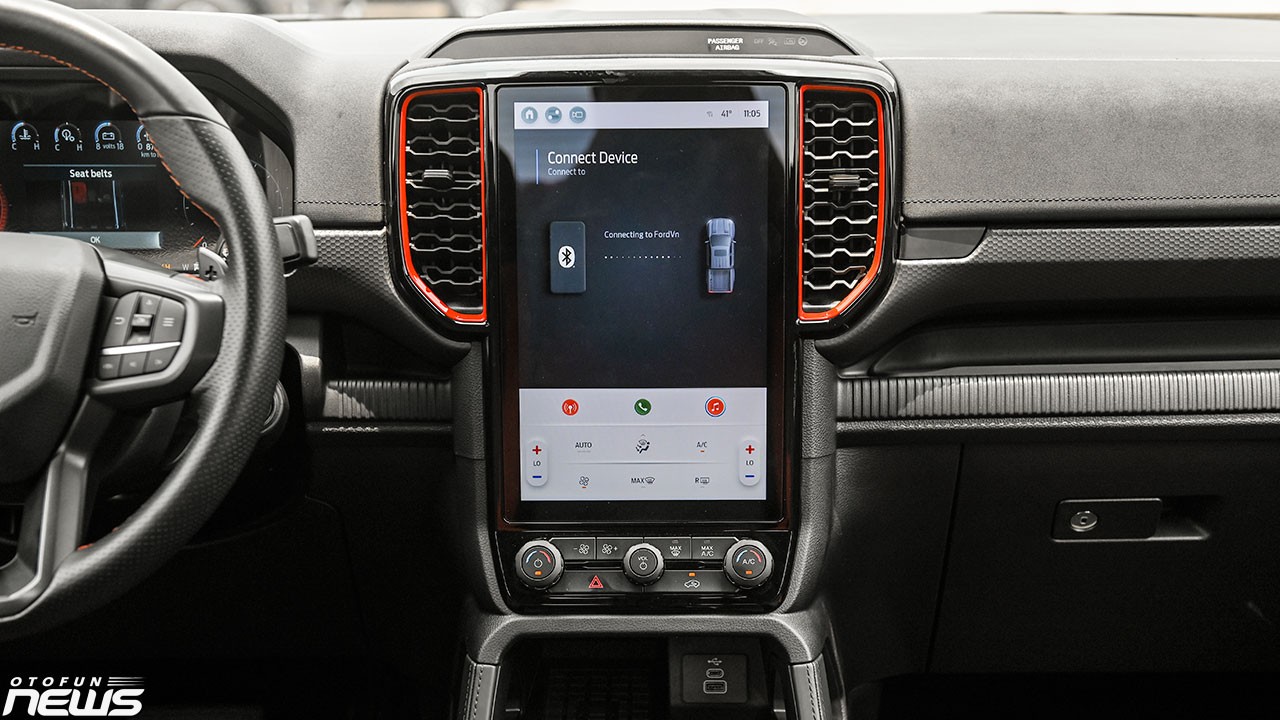 Đồng hồ hiển thị dạng kỹ thuật số với màn hình 12,3 inch sắc nét. Hệ thống giải trí trang bị màn hình cảm ứng 12 inch đặt dọc, sử dụng hệ điều hành Sync 4, có thể điều khiển bằng giọng nói, hỗ trợ kết nối Apple Car Play hoặc Android Auto. Đặc biệt, phiên bản Ranger Raptor sử dụng cần số điện tử thay vì cần số cơ như trên các phiên bản khác.