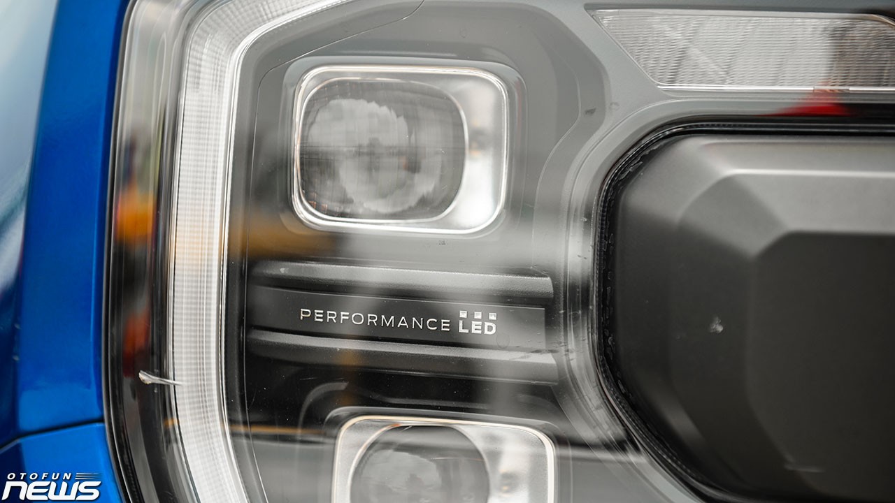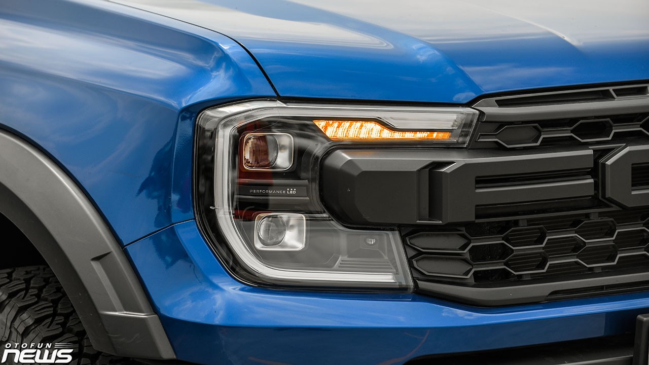 Tổng thể diện mạo của Ranger Raptor cho cái nhìn hầm hố đầy uy lực. Xe có kích thước dà 5.381mm, rộng 2.028mm, cao 1.922mm. Cụm đèn trước LED Performance toàn phần với dải đèn định vị chữ C. Trong khi đó, cụm đèn sau không có nhiều khác biệt với phiên bản Wildtrak.