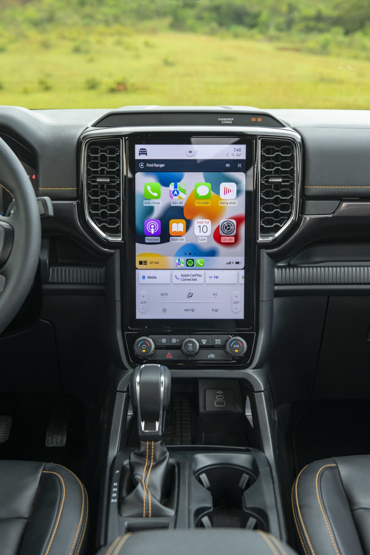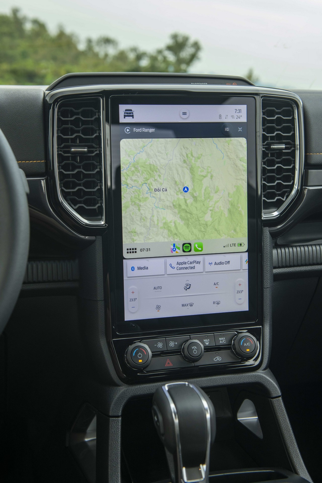 Hệ thống giải trí trang bị màn hình cảm ứng đặt dọc kích thước 12 inch sử dụng hệ điều hành Sync 4 mới nhất. Người dùng có thể kết nối thông qua bluetooth, Apple Car Play hoặc Android Auto. Màn hình này cũng tích hợp camera 360 giúp tài xế quan sát toàn cảnh.