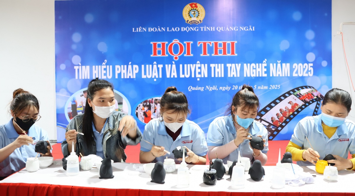 Nữ công nhân hăng say thi luyện tay nghề trong Hội thi “Tìm hiểu pháp luật và luyện thi tay nghề năm 2025” tại Quảng Ngãi, thể hiện tinh thần “Giỏi việc nước, đảm việc nhà”, không ngừng rèn luyện, nâng cao kỹ năng nghề nghiệp và khẳng định vai trò của lao động nữ thời kỳ mới. |
