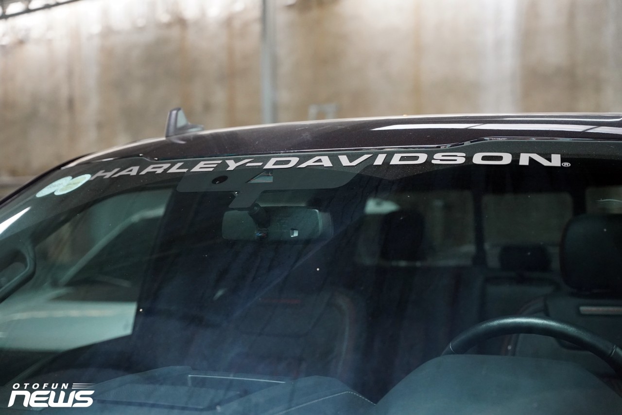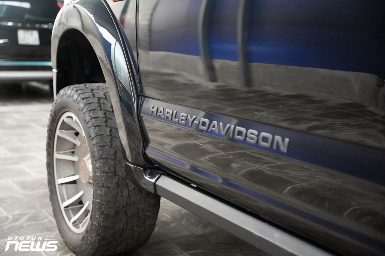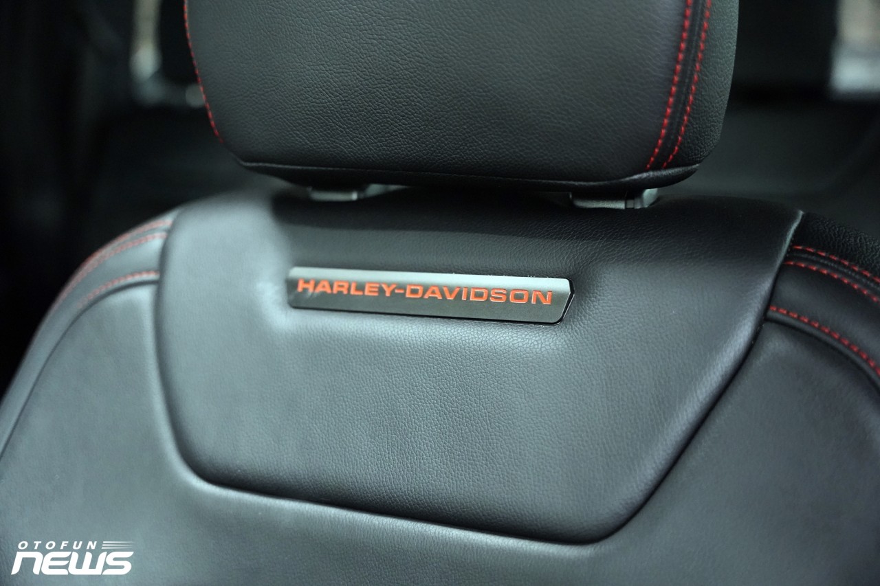 Dấu ấn của Harley-Davidson tiếp tục xuất hiện với dòng chữ tên hãng ở trên kính lái, hai bên hông xe, nắp cốp sau. Phần mang cá hai bên cũng xuất hiện logo Harley-Davidson. Mâm xe 22 inch độc quyền, in chìm logo cũng như tên của hãng xe máy nổi tiếng. Cuối cùng, hai bên ống pô cỡ lớn phía sau cũng có 3 đường kẻ màu cam đặc trưng.